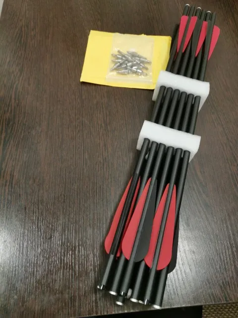 Прислали стрелы без наконечников, хотя в описании и на фотографии были с наконечниками. 12 наконечников стоят 450 р. Прислали с опозданием на 3 дня. 3 стрелы из 12 на 0,5 грамм тяжелее остальных.