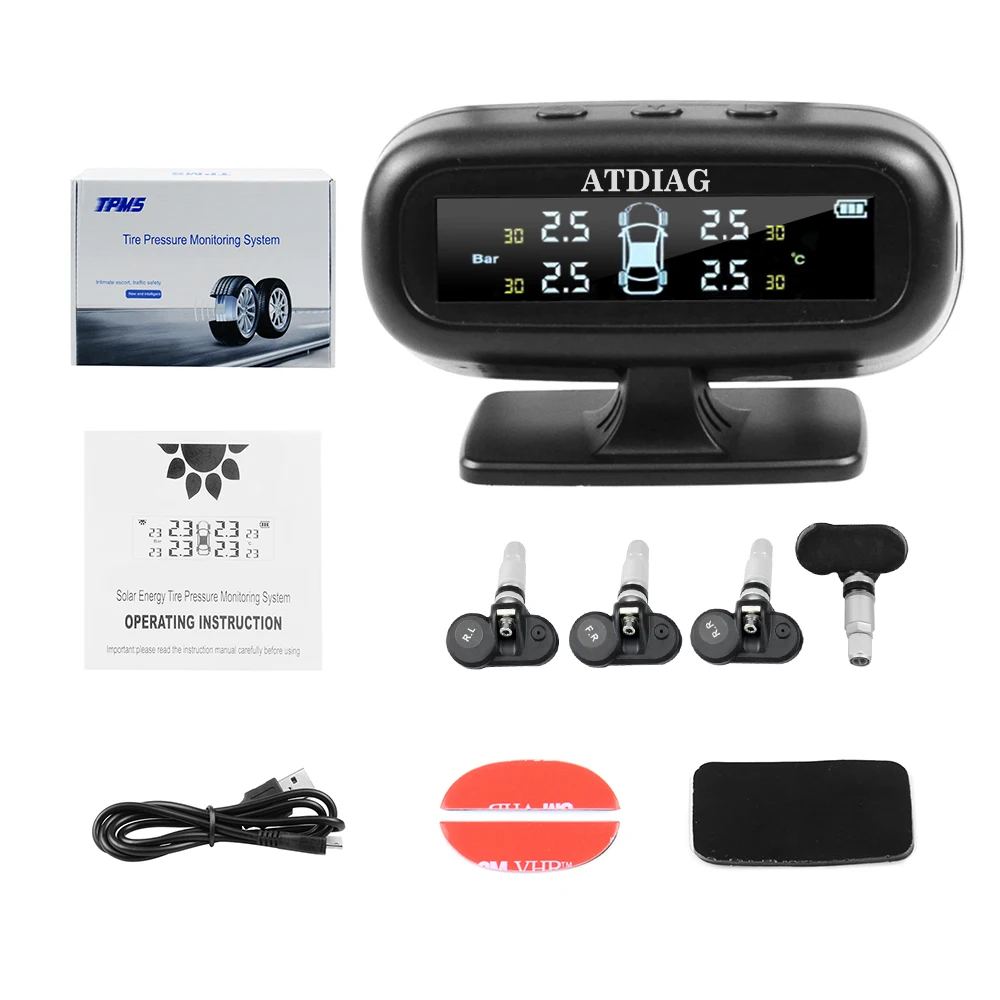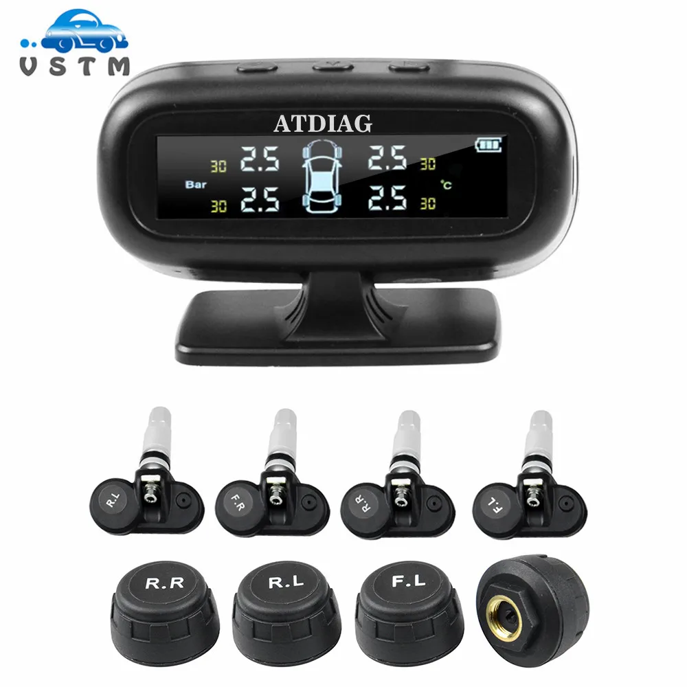 Система контроля давления в шинах VSTM на солнечной батарее Универсальная беспроводная TPMS с 4 внешними водонепроницаемыми датчиками цифровой ЖК-дисплей