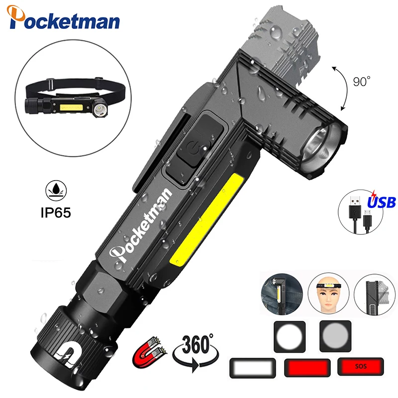 8000LM перезаряжаемый тактический фонарик с креплением на одежду, двойное топливо, 90 градусов, супер яркий светодиодный фонарь с 5 режимами