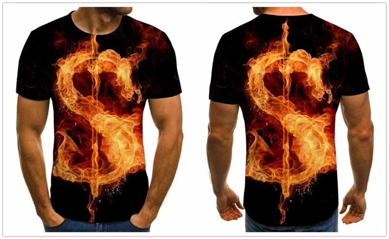 Новая 3d футболка, модная футболка с принтом пламени, мужская и жен...