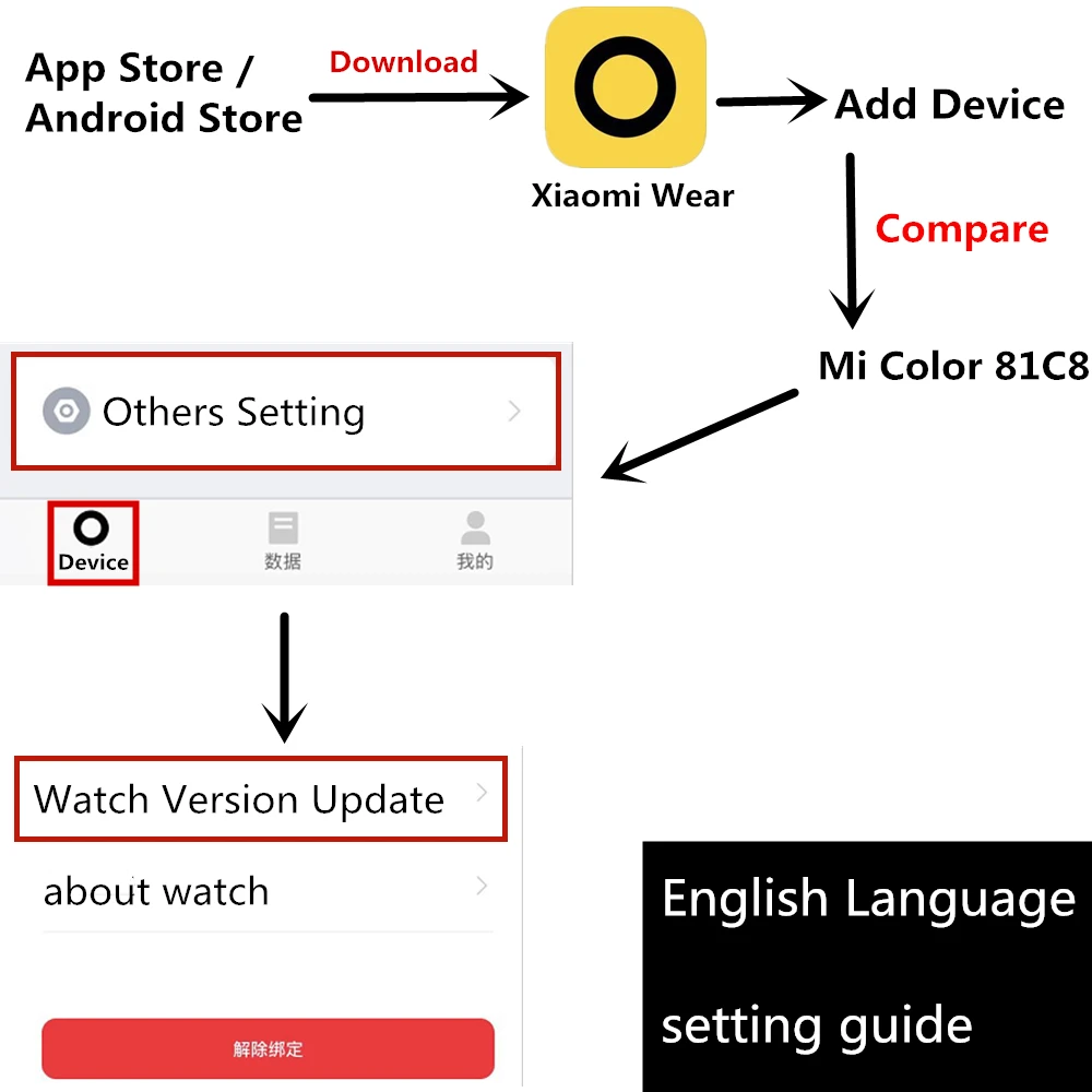 1. Перед использованием Установите язык телефона на английский, а затем подключите часы, чтобы убедиться, что интерфейс часов отображается на английском языке.