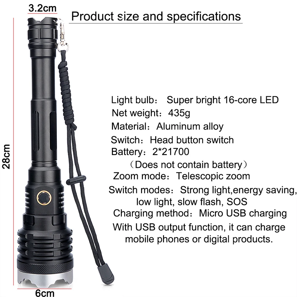 Самый яркий 16-Core XHP160.2 светодиодный фонарик Мощность банк 10000mah фонарь Usb Перезаряжаемые 21700 Батарея с регулируемым зумом