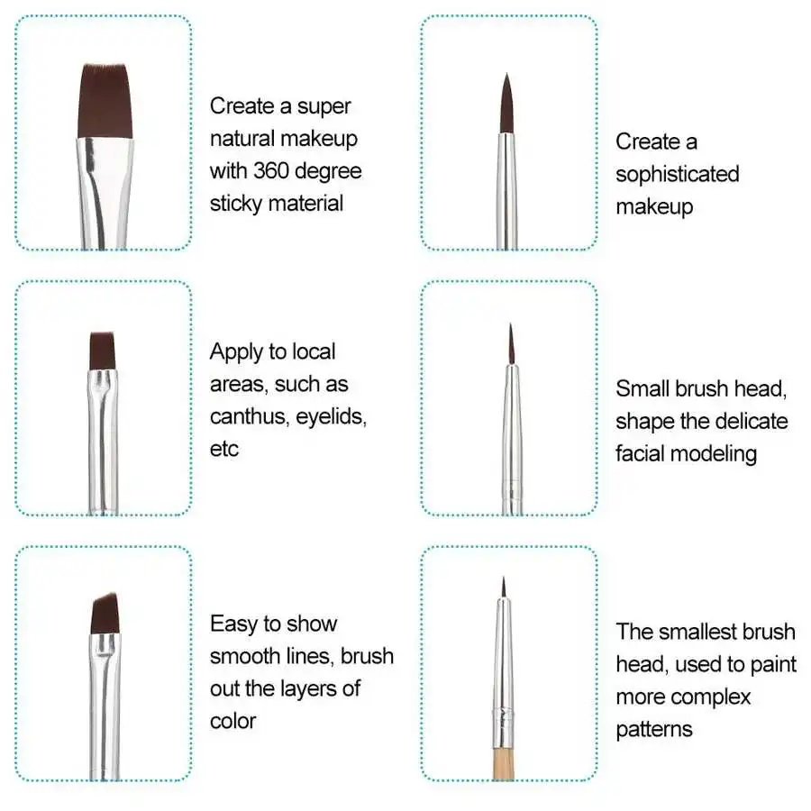 Спецификация: Состояние на 100% абсолютно новый Тип изделия: кисти для краски Материал: нейлоновая кисть для волос Количество: 6 шт.