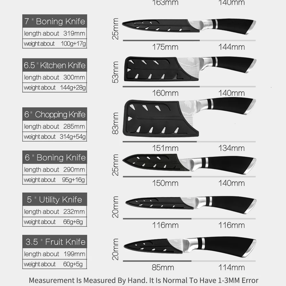 Knife Size8'' 7'' 6.5'' 6'' 5'' 3.5'' Inch
