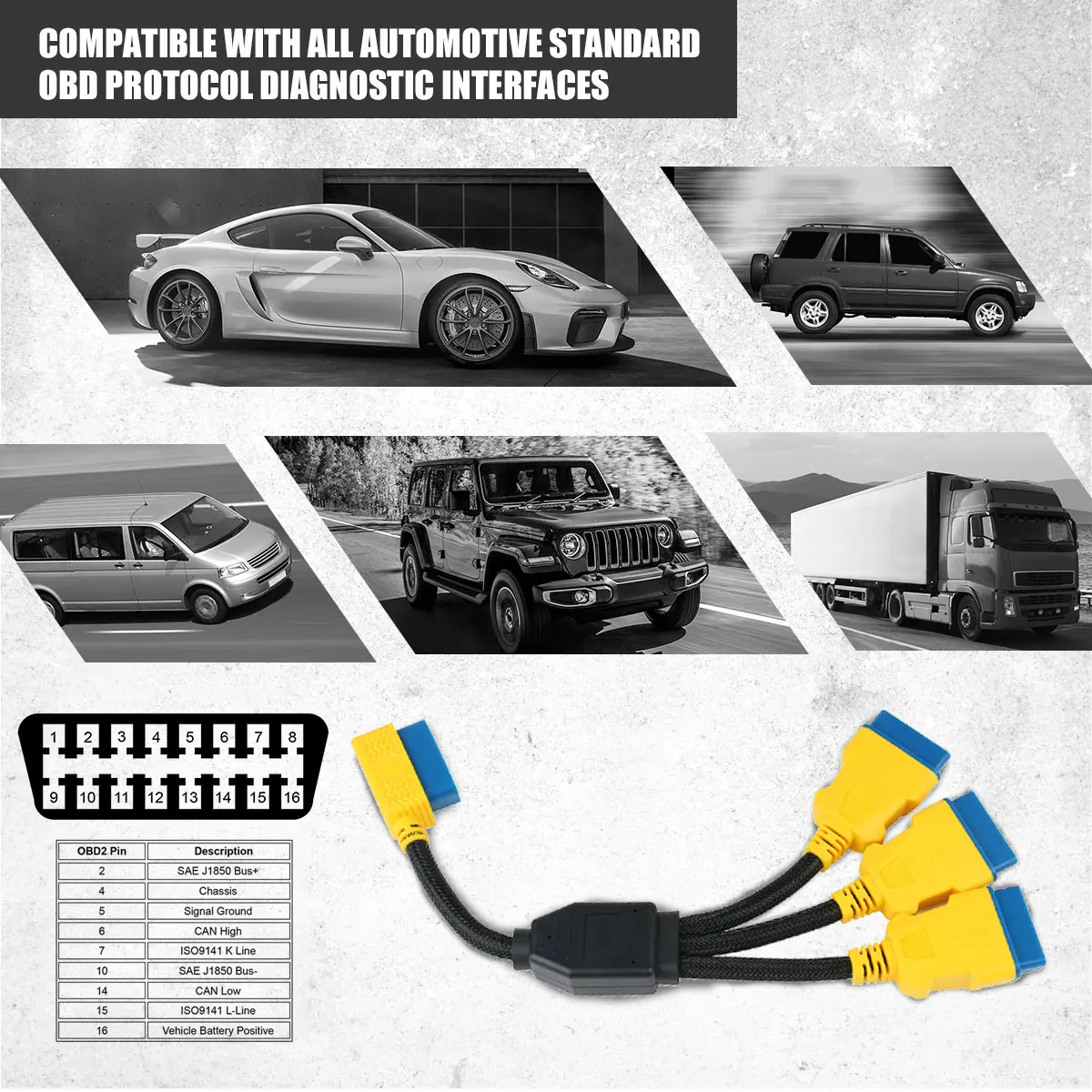 Кабель-разветвитель AUTOOL OBD2, удлинительные кабели от 1 до 3, переходник, 16-контактный кабель-удлинитель OBDII штекер-гнездо, 35 см