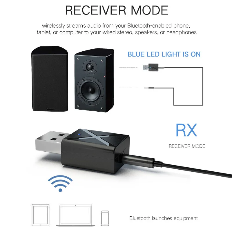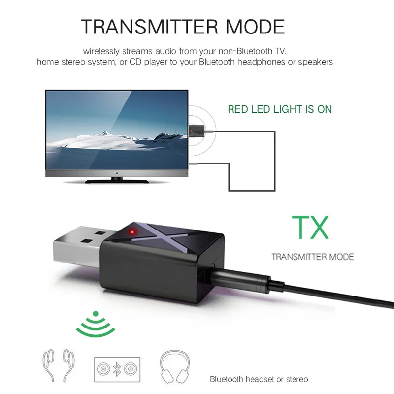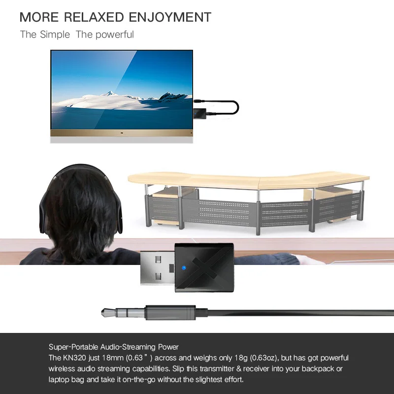 Особенности:Режим передатчика: Беспроводная передача аудио с телевизора, не работающего по Bluetooth, домашней стереосистемы или CD-плеера на наушники или колонки, совместимые с Bluetooth.Режим приемника: Беспроводная передача аудио с телефона, планшета или компьютера с поддержкой Bluetooth на проводную стереосистему, динамики или наушники.Супер-портативное потоковое аудио Питание: KN320 всего 18 мм (0,63 дюйма) и весит всего 18 г (0,63 унций), но имеет мощные беспроводные возможности потоковой передачи аудио. Вставьте этот передатчик и приемник в рюкзак или сумку для ноутбука и возьмите его на ходу без каких-либо усилий.Широкая совместимость: usb-порт, легкий и компактный, прост в использовании и переноске.Режим передатчика: Беспроводная передача аудио с телевизора без Bluetooth, домашней стереосистемы или cd-плеера на bluetooth-совместимую гарнитуру или динамик.Спецификация:Название продукта: bluetooth-совместимый приемник передатчикаМатериал: пластик + металлЦвет: черныйТехнологии: BT5.0, A2DP, AVRCP (только режим приемника)Рабочий диапазон: до 10 м/33 футов (без каких-либо блокирующих объектов)Имя сопряжения (режим приемника): KN320Режим передатчика: Красный светодиодный светильник включенРежим приемника: синий светодиодный светильник включенРазмер: 32*8,5 мм/1,3*0,33 дюймовПосылка включает в себя:1 x Bluetooth совместимым 5,0 аудио передатчик/приемник адаптер1x3,5 мм Aux кабель1 x Руководство пользователяМетод сопряжения:Режим RX: имя сопряжения: KN320, найдите KN320 в Bluetooth-совместимых настройках телефона для сопряжения. Синий светильник мигает во время процесса сопряжения, и синий светильник перестает мигать после успешного сопряжения. Подключите устройство к аудиоустройству с 3,5 аудио кабель.Режим TX: режим TX будет автоматически искать другие совместимые с Bluetooth приемные устройства (такие как bluetooth-совместимая гарнитура, bluetooth-совместимая колонка, bluetooth-совместимый приемник и т. д.), красный светильник мигает во время сопряжения, красный светильник прекращает мигать после завершения сопряжения. Подключите устройство к устройству, таких как ТВ с 3,5 аудио кабель/RCA аудио кабель.