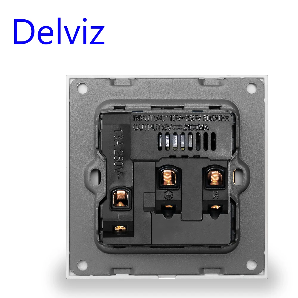 Usb-розетка Delviz европейского стандарта, двойная usb-розетка с переключателем, Международная розетка, светодиодный индикатор, универсальная прозрачная стеклянная панель