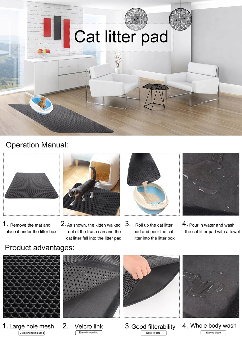 Новые товары для котят, EVA коврик для кошачьих туалетов, коврики для кошек, складная Двусторонняя Подушка для кошачьих туалетов.Изготовлен из прочной и нетоксичной эваДвойной цвет и двойная сторона, обе стороны могут быть использованы.Вогнутая выпуклая конструкция может эффективно зажимать мусор на кошачьей лапе, предотвращает загрязнения пола и держать его в чистоте.Он может быть сложен и более гибким, и подходит для внутреннего и наружного применения.Большая площадь, подходит для всех видов кошекМожет использоваться как влагостойкая Подушка, мягкая и удобная.Легко моется и можно мыть или очищать водой напрямую.Прочный, чистый, антибактериальный, без искажений, не выцветает.Его также можно использовать в качестве подушки для путешествий.