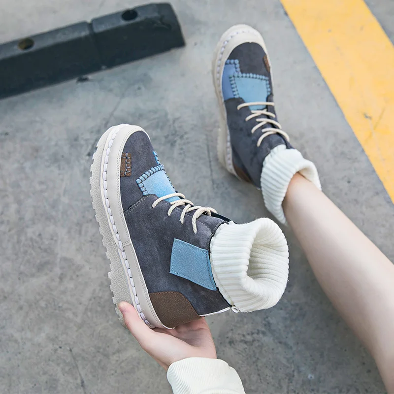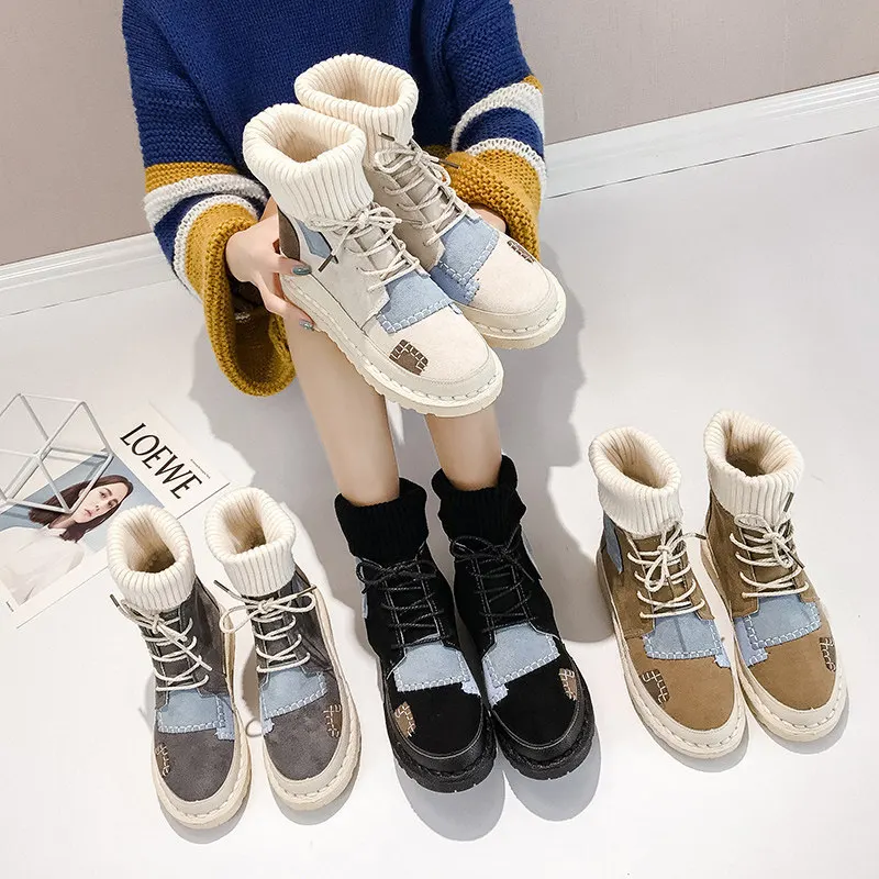 Ботинки-носки из флока на платформе, женская зимняя обувь, модные ботинки для девочек, Новая повседневная обувь на платформе, женские ботильоны на шнуровке для женщин
