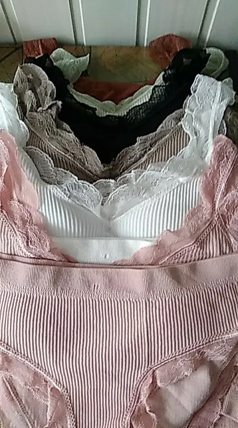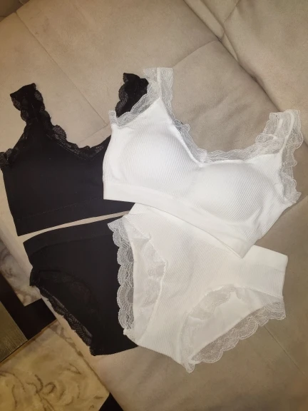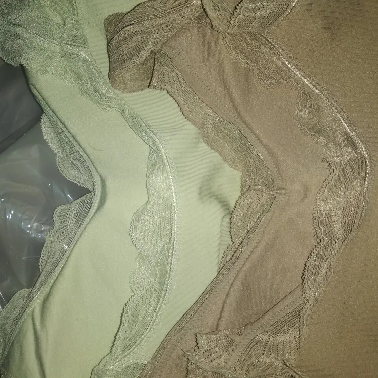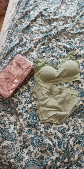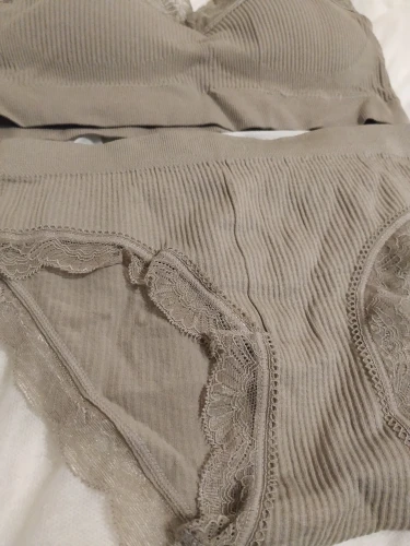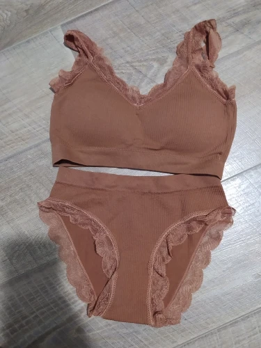 заказала два комплекта. в плане удобства одни из лучших на Али. да и смотрятся хорошо, для дома так вообще отлично. правда коричневый с дыркой со внутренней стороны, не критичной конечно, но все равно не очень приятно. ещё не очень понятно зачем посередине лифа зашивать надо было, тем более так коряво. по фото видно, что у зеленого кружева по середине не прошиты и смотрится он как по мне даже лучше. кружева не топорщатся. а коричневый из-за этого как-то не симметрично смотрится, и это становится виднее когда его надеваешь.