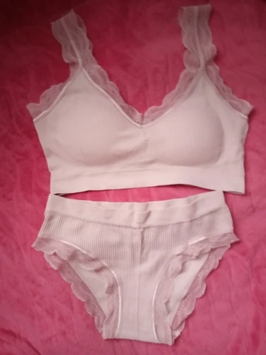 Заказала два комплекта, розовый и белый. Довольно удобный комплект, трусики с подкладочкой, топик мне немного великоват, у меня грудь маленькая, немного лямки подошью и будет сидеть поплотнее. Качество хорошее, чашечки вынимаются легко для стирки.