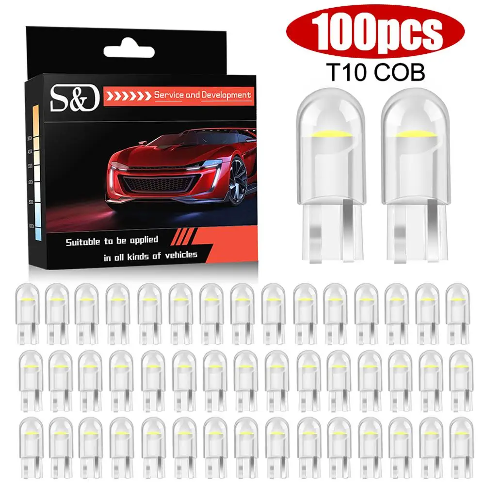 Светодиодные лампы T10, 1005030 шт., автомобисветодиодный светодиодсветильник лампы 194, 168, W5W, холодный белый свет, автомобильный COB кремнезем, красный, синий, зеленый, желтый, лампа для номерного знака, 12 В