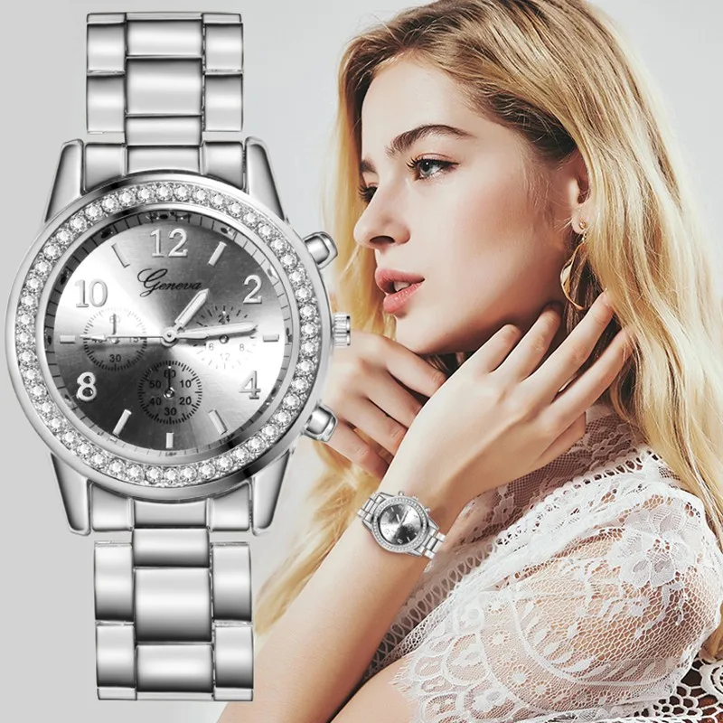 Женева новый бренд классические поддельные трехглазые Дамы Роскошные watcH Золотой Циферблат из нержавеющей стали 2020 модные повседневные женские кварцевые часы