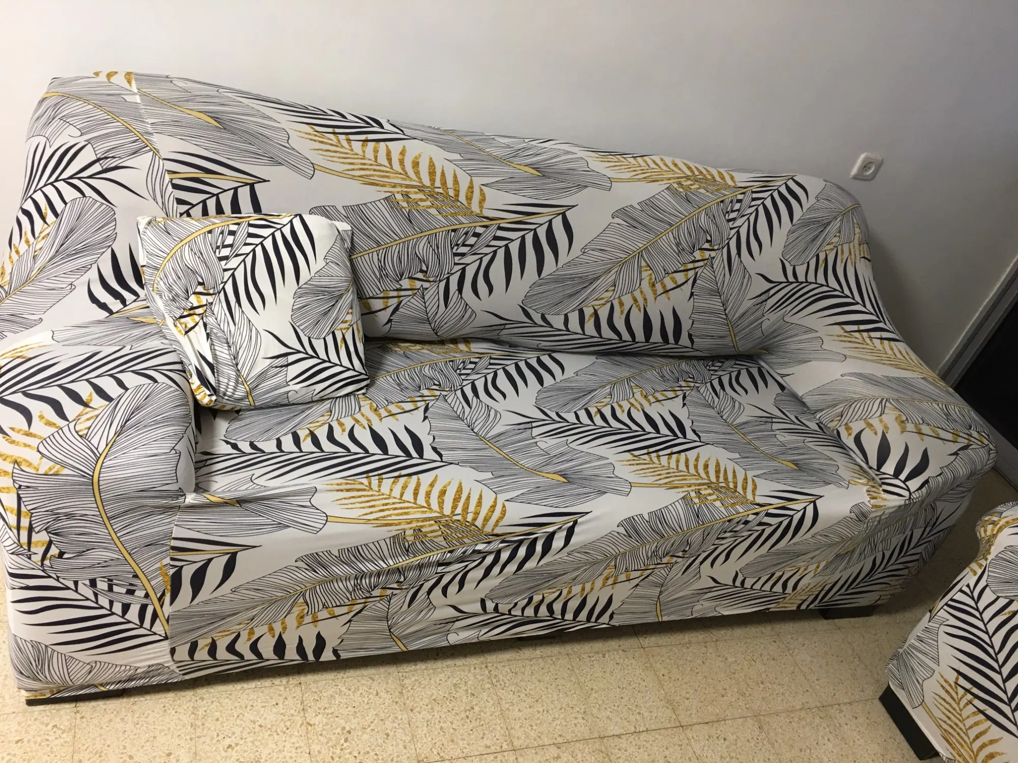 Эластичный декоративный чехол для дивана с принтом, 5% спандекс, ше...