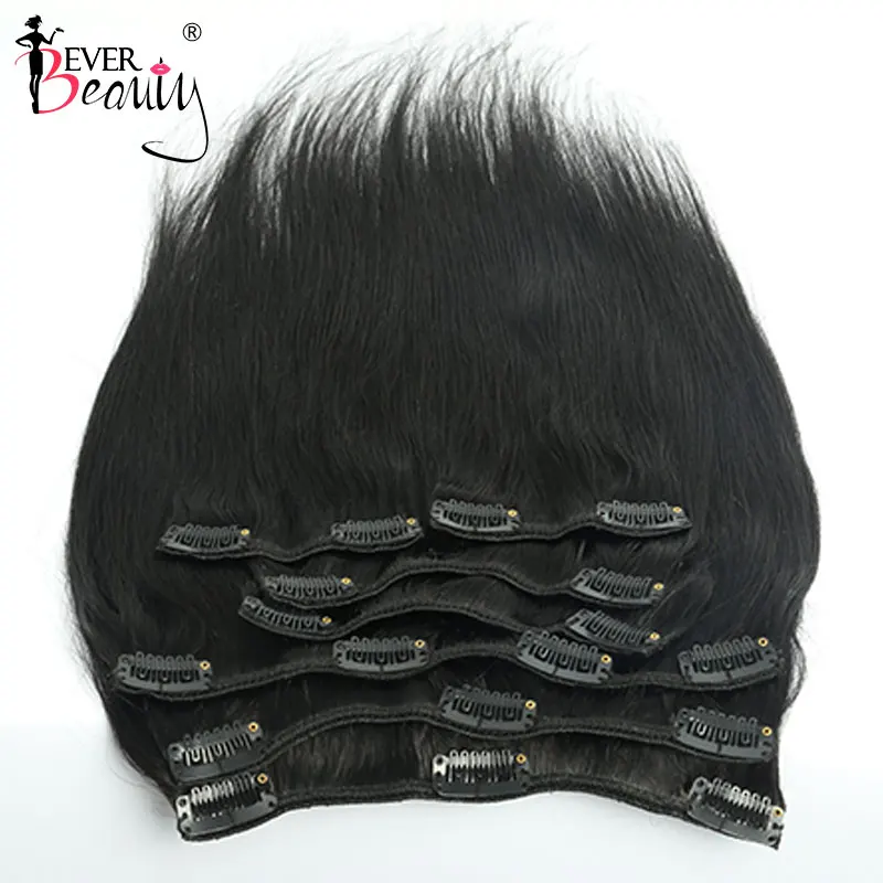 Прямые накладные волосы на заколке, человеческие волосы для наращивания, бразильские шелковистые прямые Заколки для женщин 10-26 дюймов Ever Beauty