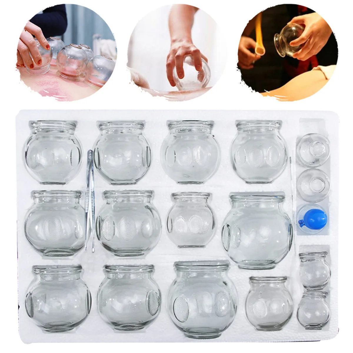 16 шт.компл. утолщенные Стеклянные китайские Вакуумные Банки Набор акупунктурный массаж чашка для терапии взрывозащищенные стеклянные банки подарочный набор