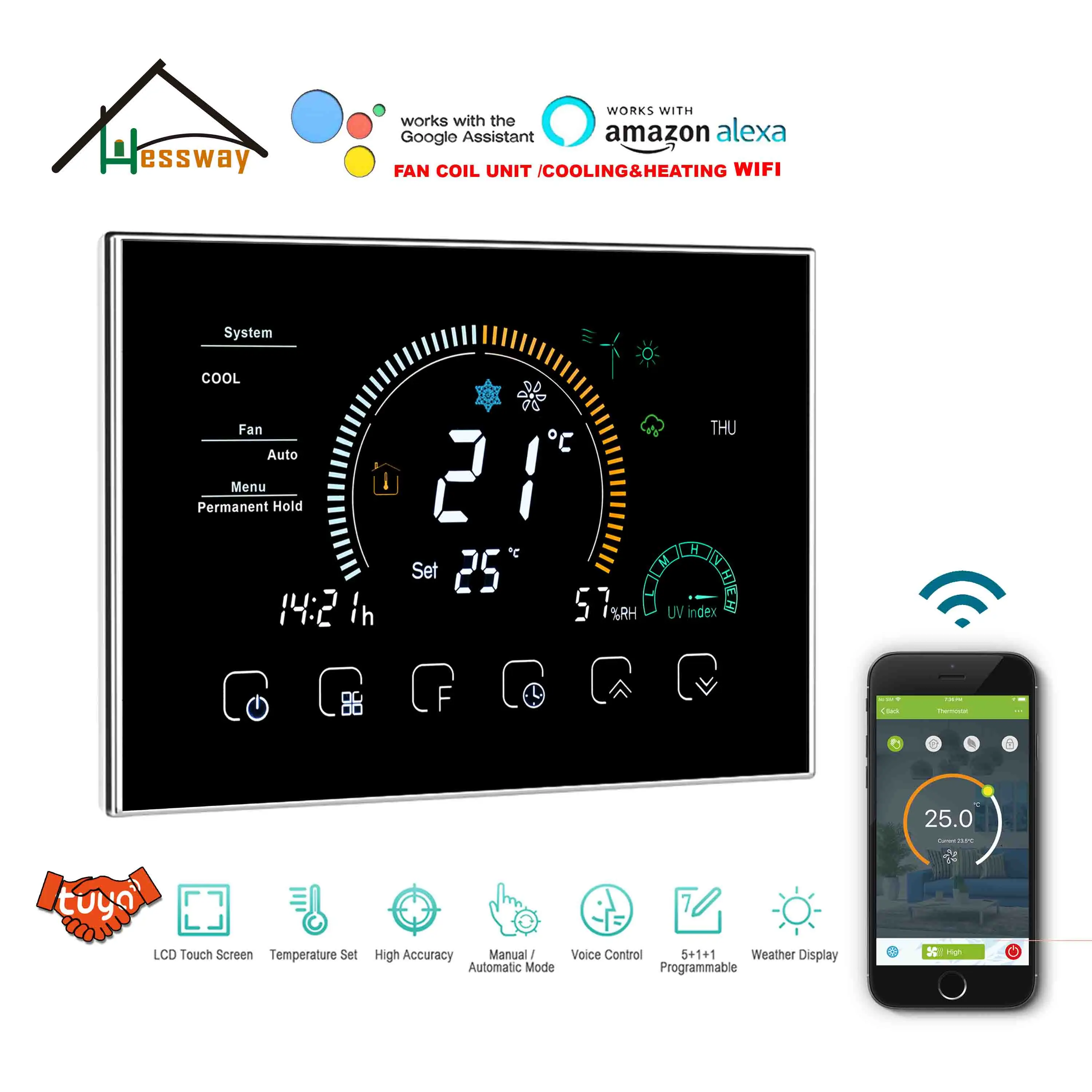 Высококлассный обогреватель HESSWAY, кулер с 2P и 4-контактным вентилятором, Wi-Fi, термостат, умный срок службы для смарт-устройств Bridge TUYA