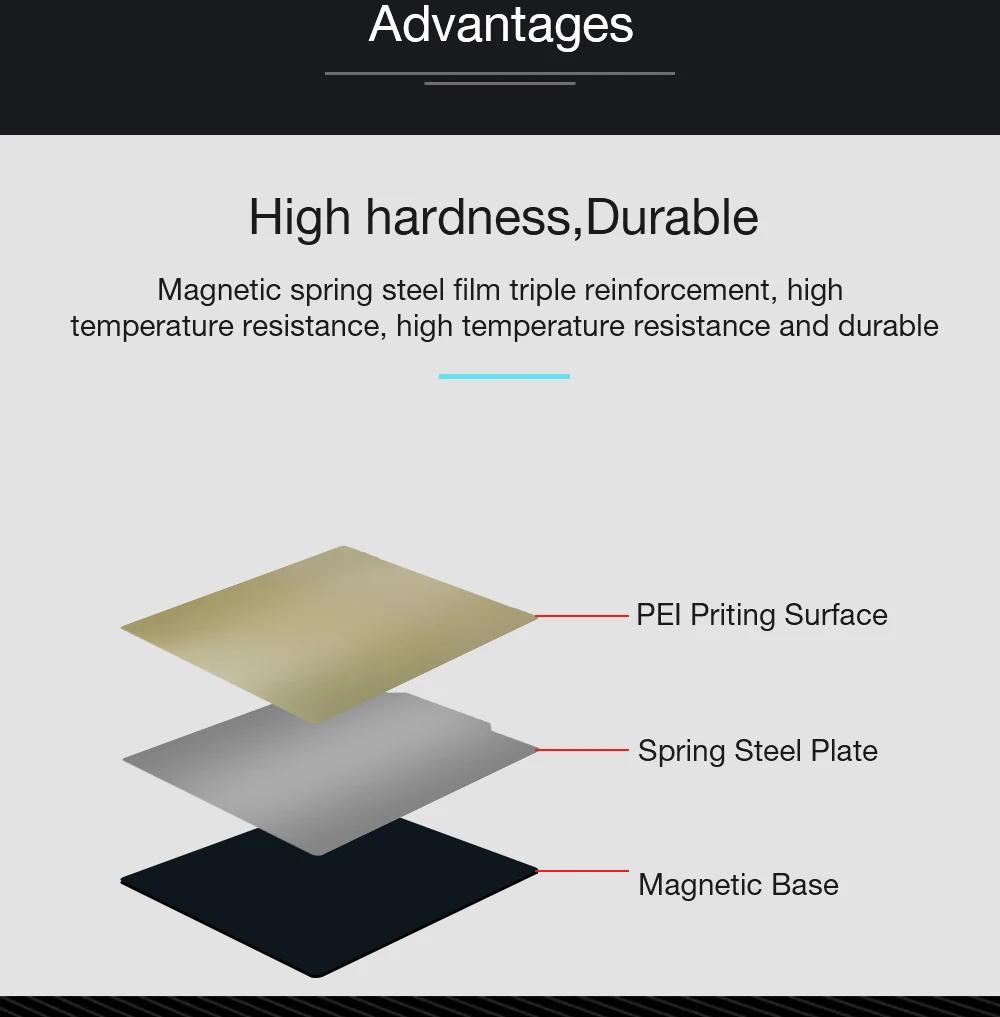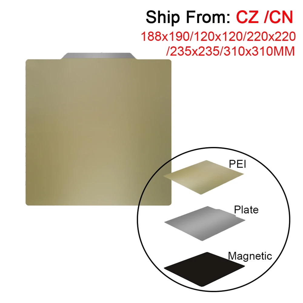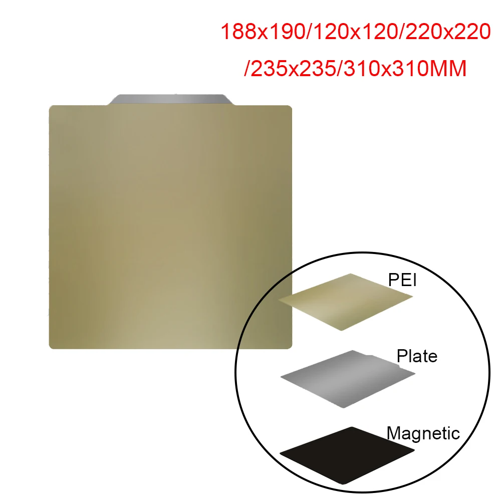 Детали для 3D принтера, пружинная стальная листовая пластина PEI Flex, магнитная наклейка, Подогреваемая кровать 180120220235310 мм Ender3 CR10, Горячая кровать