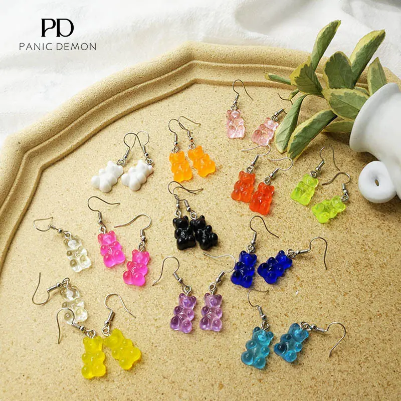 Новые подходящие ко всему оригинальные Подвесные серьги в минималистском стиле желейные Разноцветные серьги-подвески в форме медведя женские модные минималистичные серьги 2020