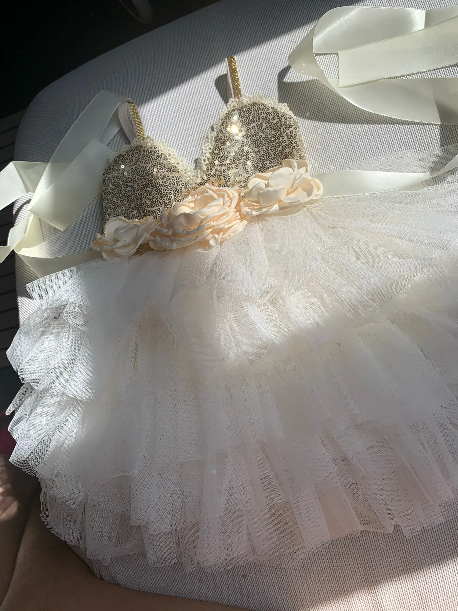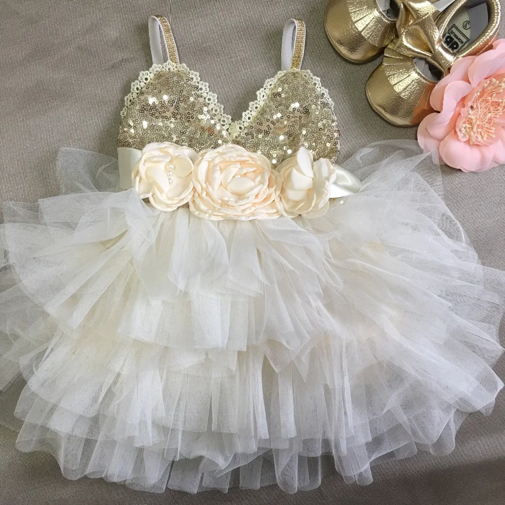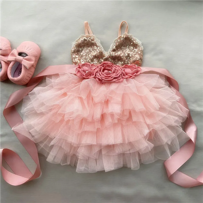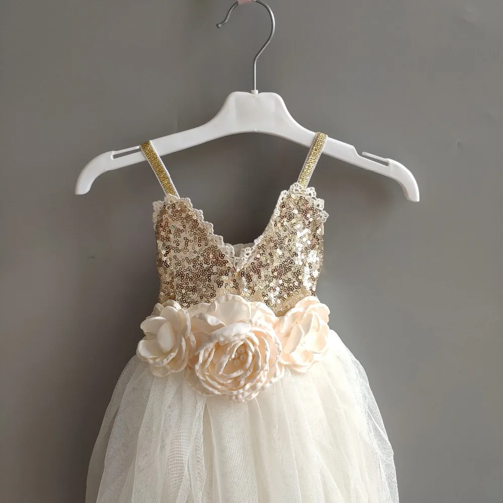 Детское блестящее многослойное вечерние-пачка с поясом, с золотыми блестками
