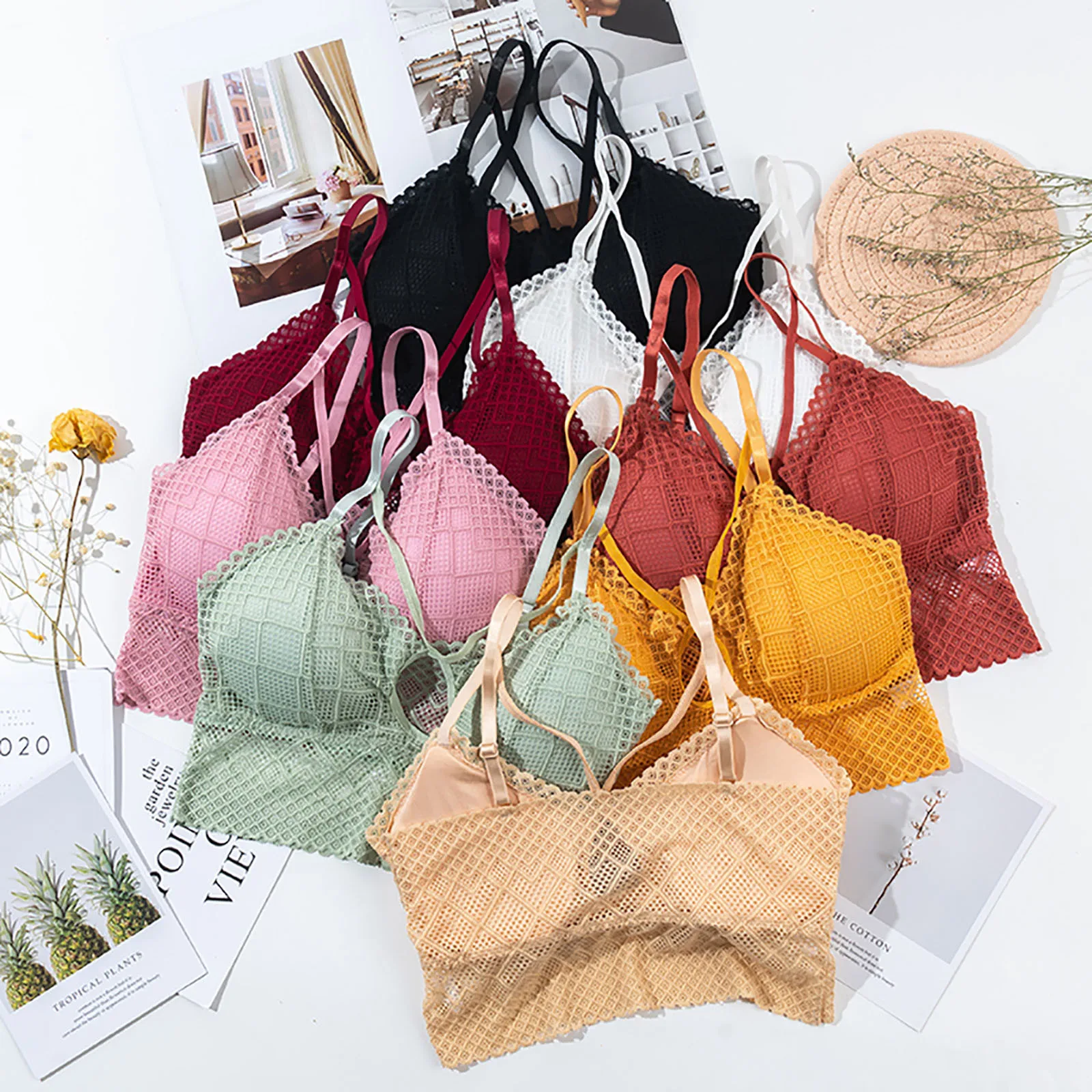 Комплект женского кружевного нижнего белья, бесшовный, с бюстгальтером пуш-ап