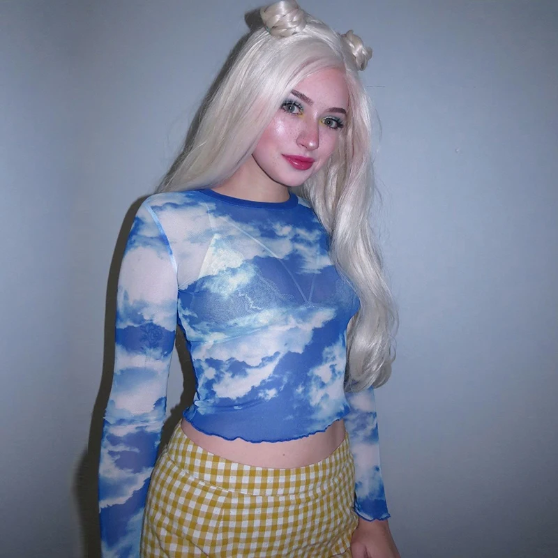 Y2K E-girl Сексуальная женская футболка прозрачный сетчатый топ с длинным рукавом Тонкая Женская водолазка футболка 2020 новое поступление