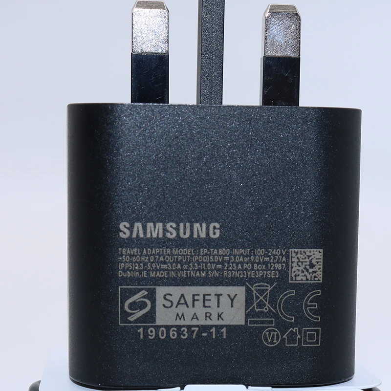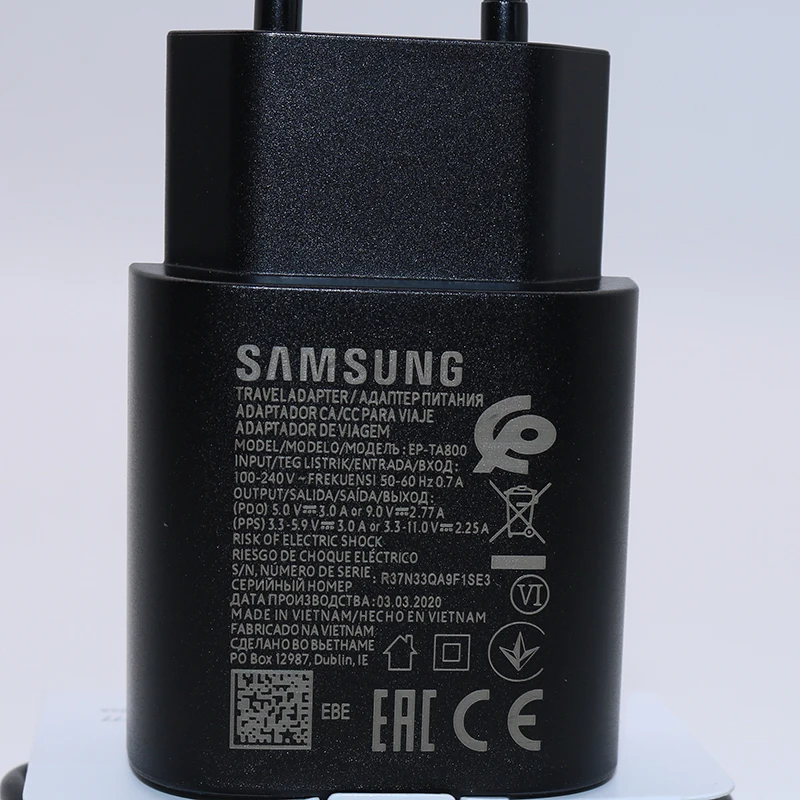 Особенности: 1,1. Оригинальная штепсельная Вилка для Samsung 25 Вт, супер быстрый адаптер зарядного устройства EP-TA800 2. Оригинальный 1M Type-C для Type-C 3. Выход:(PDO) 5,0 в/3.0A или 9,0 в/2.77A (PPS) 3,3-5,9 в/3.0A или 3,3-11,0/2.25A 3. Подходит для Samsung Galaxy Note10 + S20 A91 A90 A81 A80 A70 A71 A60 A51 A50