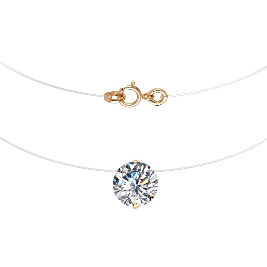 Украшение ювелирное кольеDIALVI "Невесомость" с подвеской круглый фианит 7,5 мм на леске, золото 585 пробы
