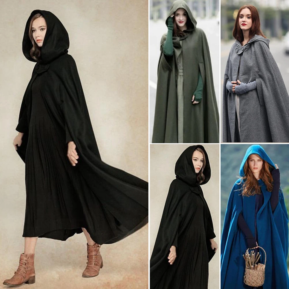 Толстая осенне-зимняя женская однотонная дизайнерская винтажная накидка с капюшоном в пол средневековая Длинная накидка