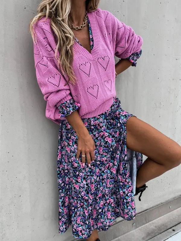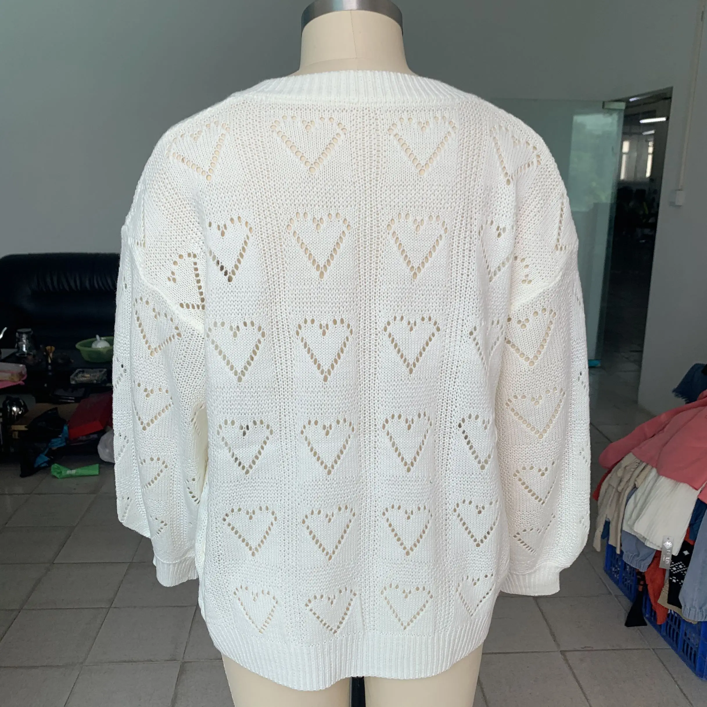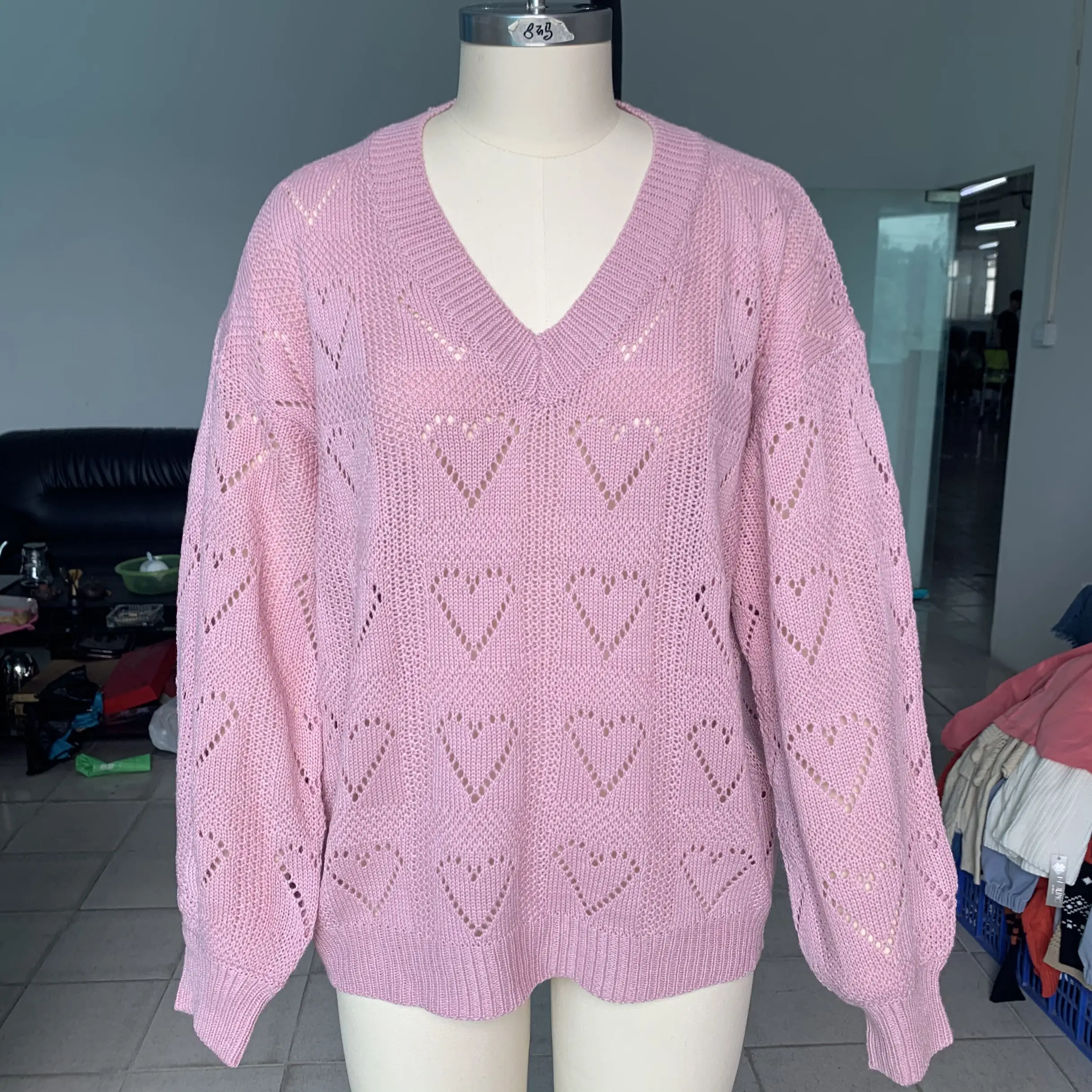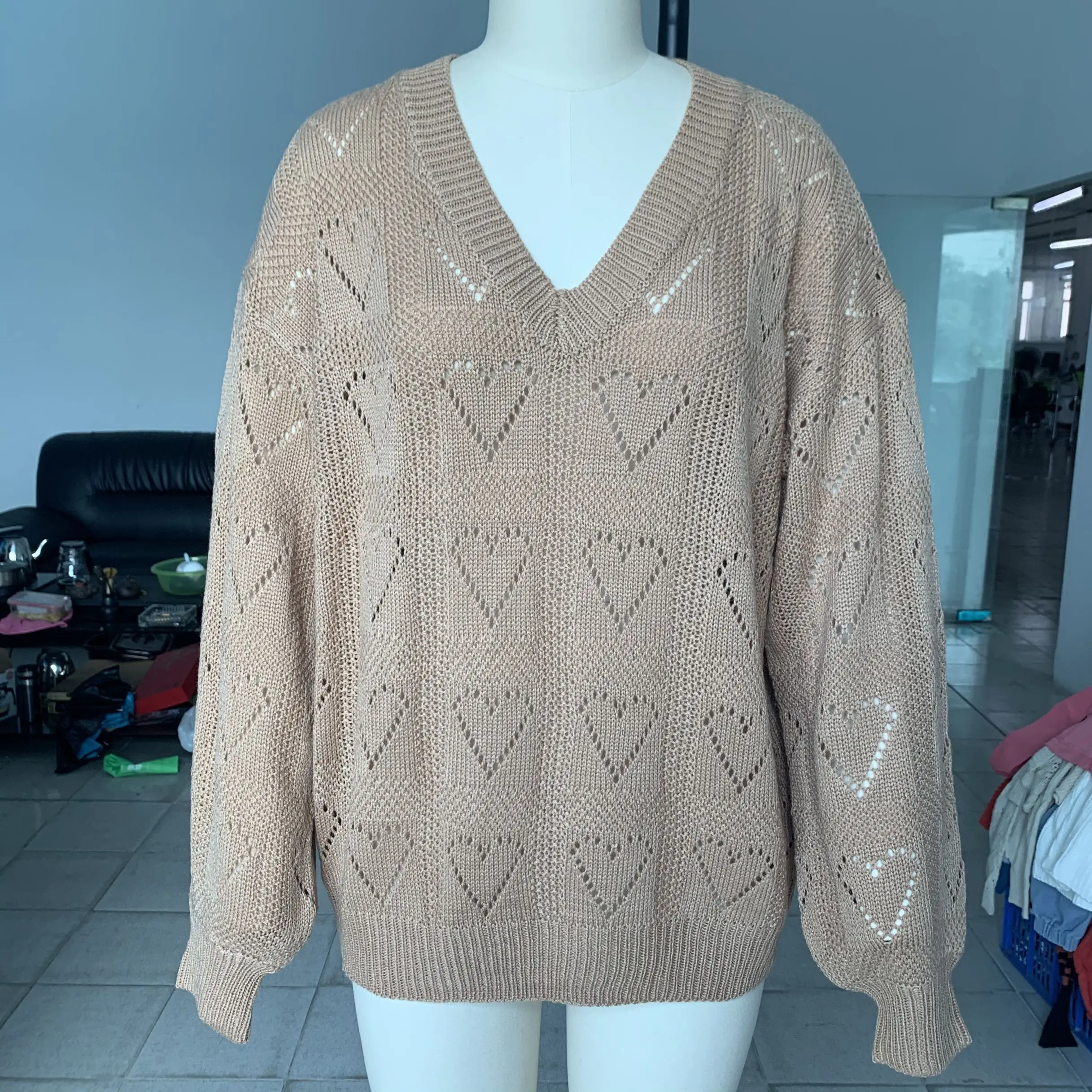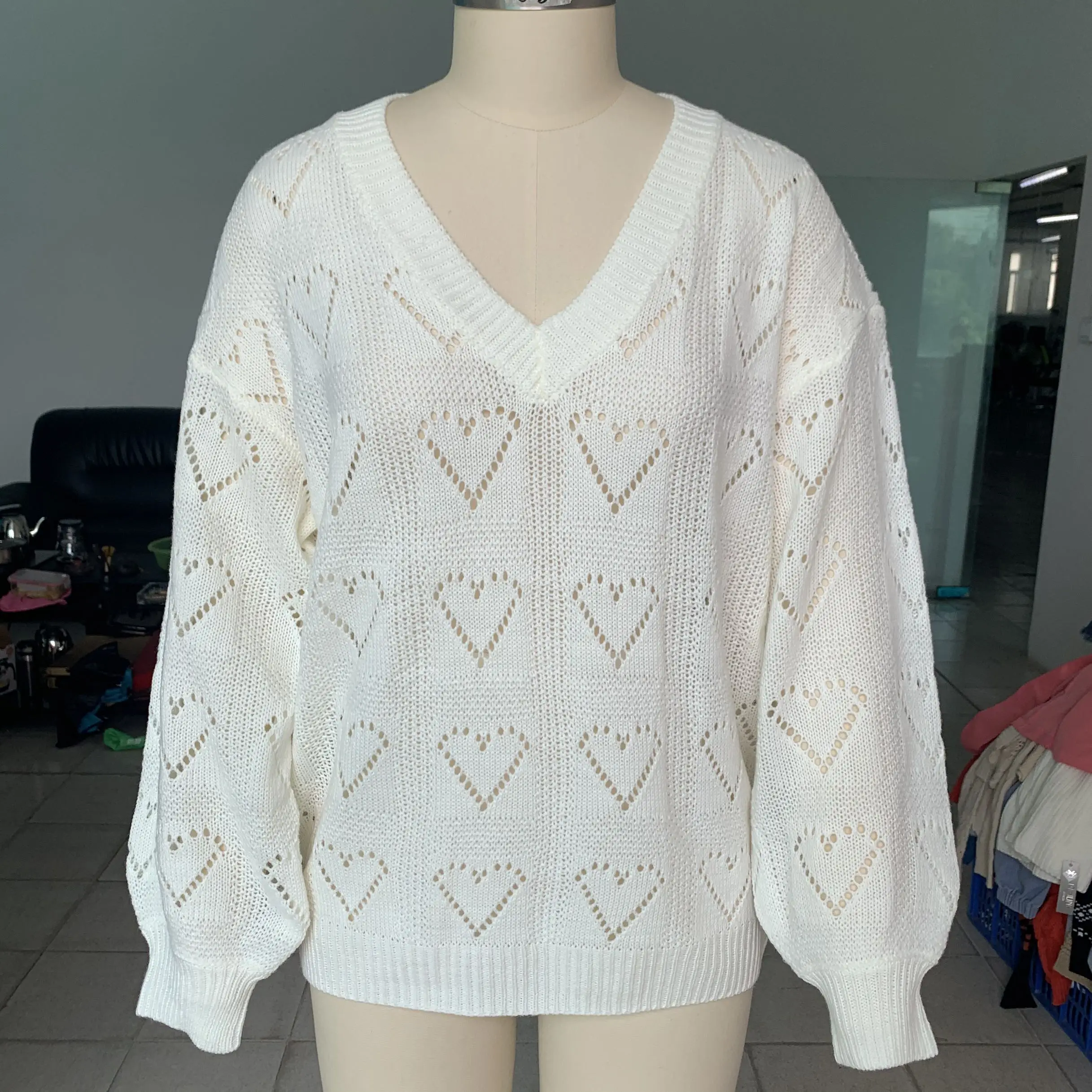 Свитер женский трикотажный, в рубчик, с V-образным вырезом, в форме сердца, S-2XL