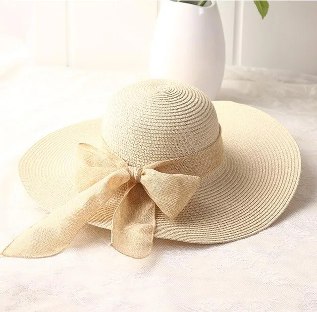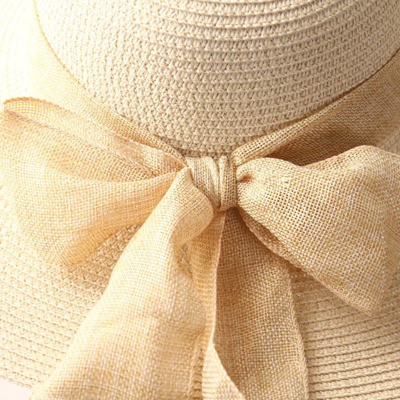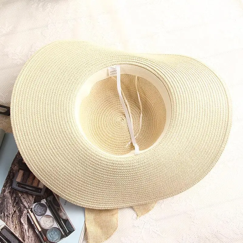 Соломенная шляпа с бантом женская, Пляжная Панама от солнца с лентой и широкими полями, ручной работы, в стиле кэжуал, для защиты от ультрафиолета, летняя