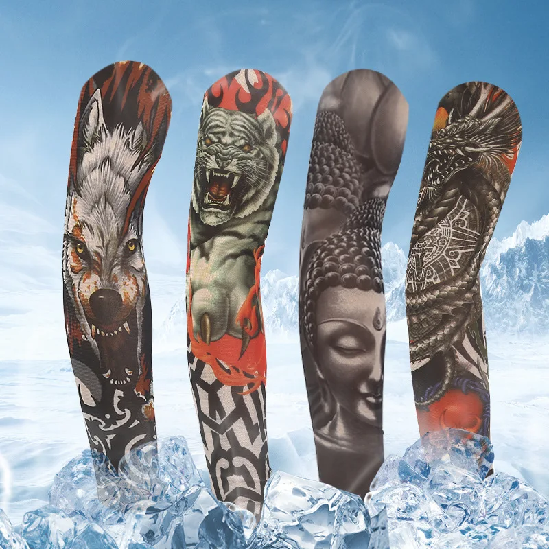 Нарукавники унисекс для велоспорта, с 3d-татуировкой, защита от солнца, для езды на велосипеде, баскетбола, компрессионные нарукавники для верховой езды, рукава с манжетами