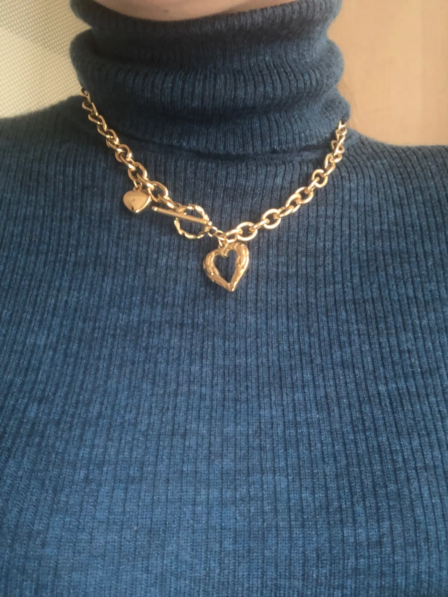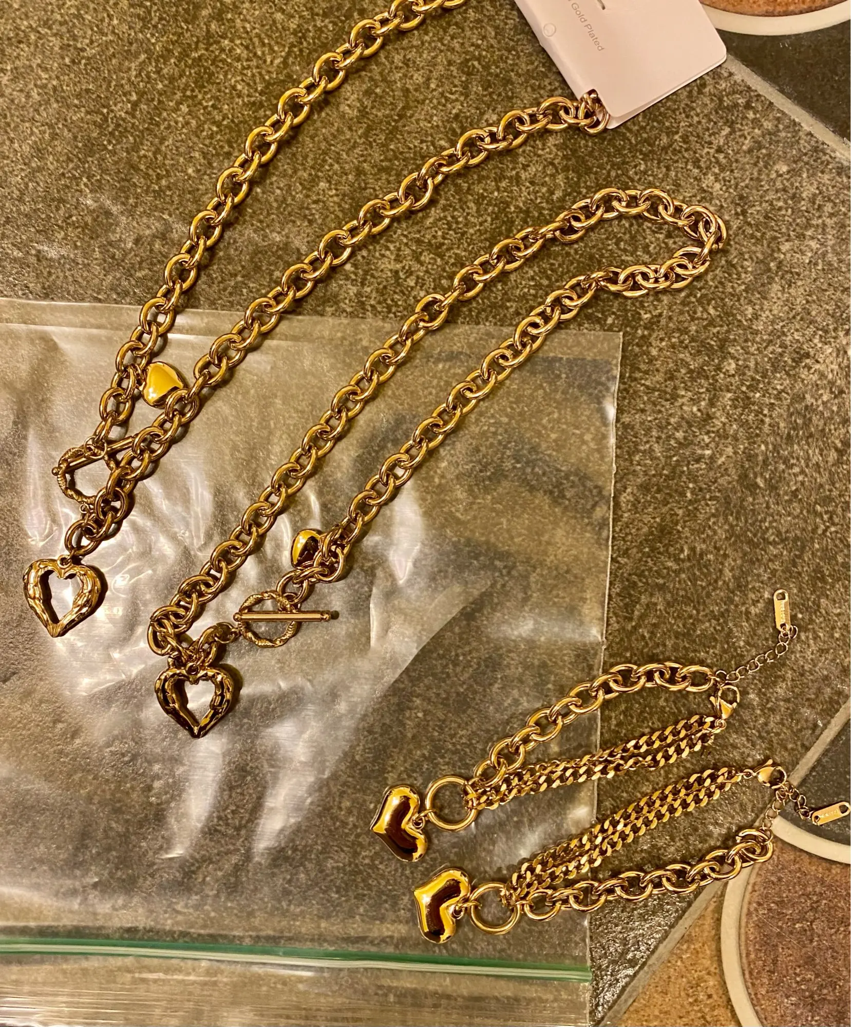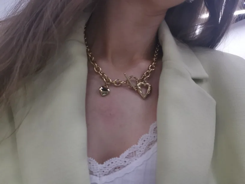 Золотые сердечки из нержавеющей стали Yhpup, массивные геометрические цепочки с металлической текстурой, ожерелье для женщин, Подарок на годовщину, новинка