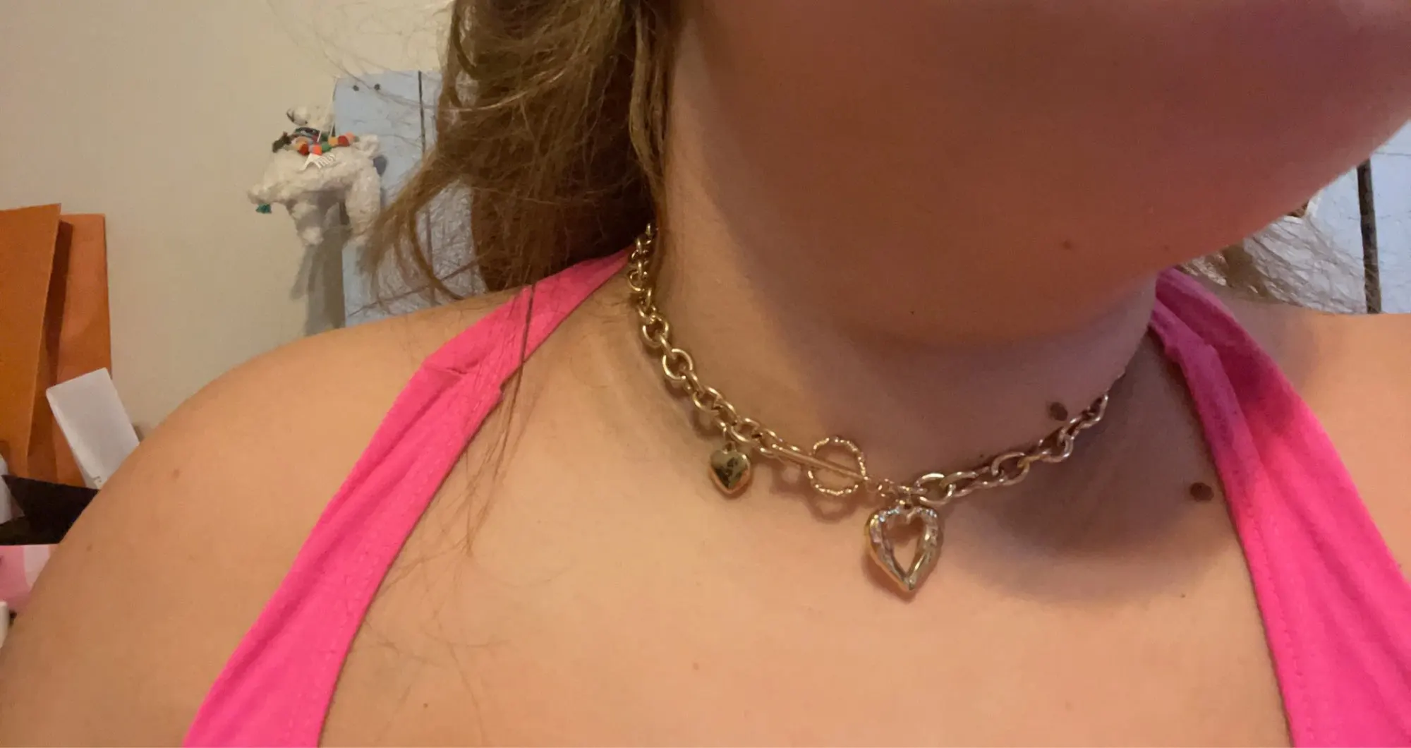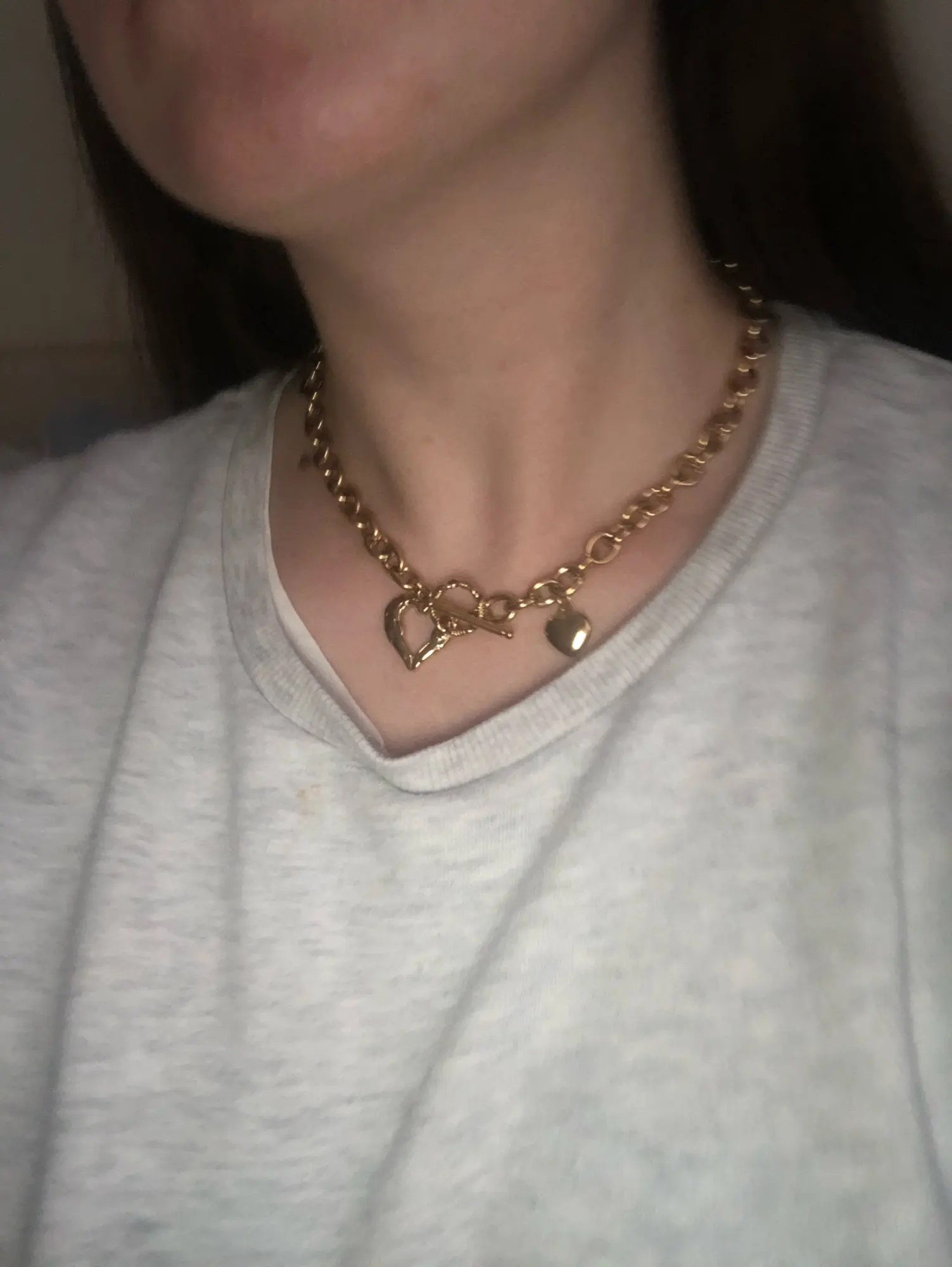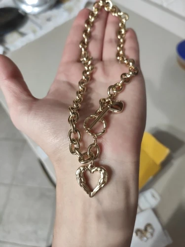 ожерелье выполнено из какого-то металла цвета классического жёлтого золота, чувствуется вес, но не тяжёлое, комфортно для носки на шее. все детали выполнены качественно, и в целом выглядит стильно. хорошая качественная ственная бижутерия, однозначно рекомендую к покупке!