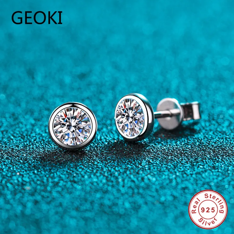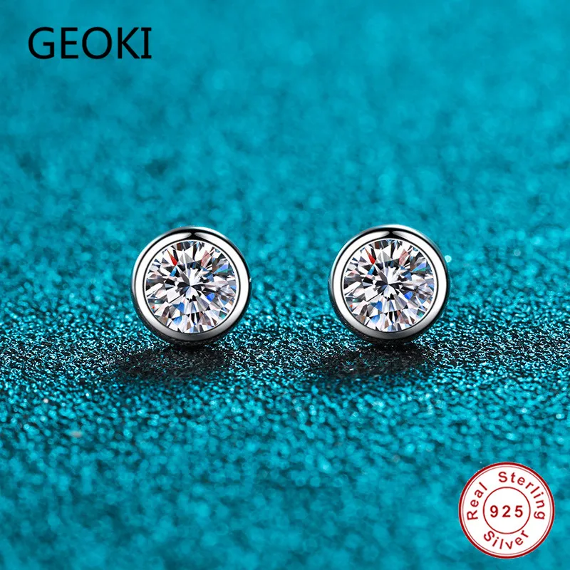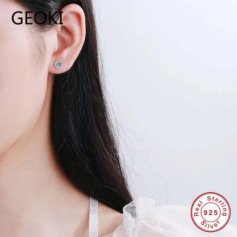 Женские серьги-гвоздики Geoki, круглые серьги с бриллиантами из стерлингового серебра 925 пробы, 05 карат