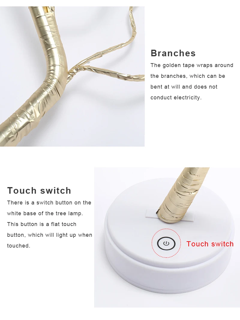 Размер изделия: основа 12 см. 36 головок-высота лампы из жемчужного дерева составляет около 45 см, 108 головок-высота лампы из медной проволоки составляет около 50 см, базовый переключатель-Сенсорный Тип, более высокая атмосфера