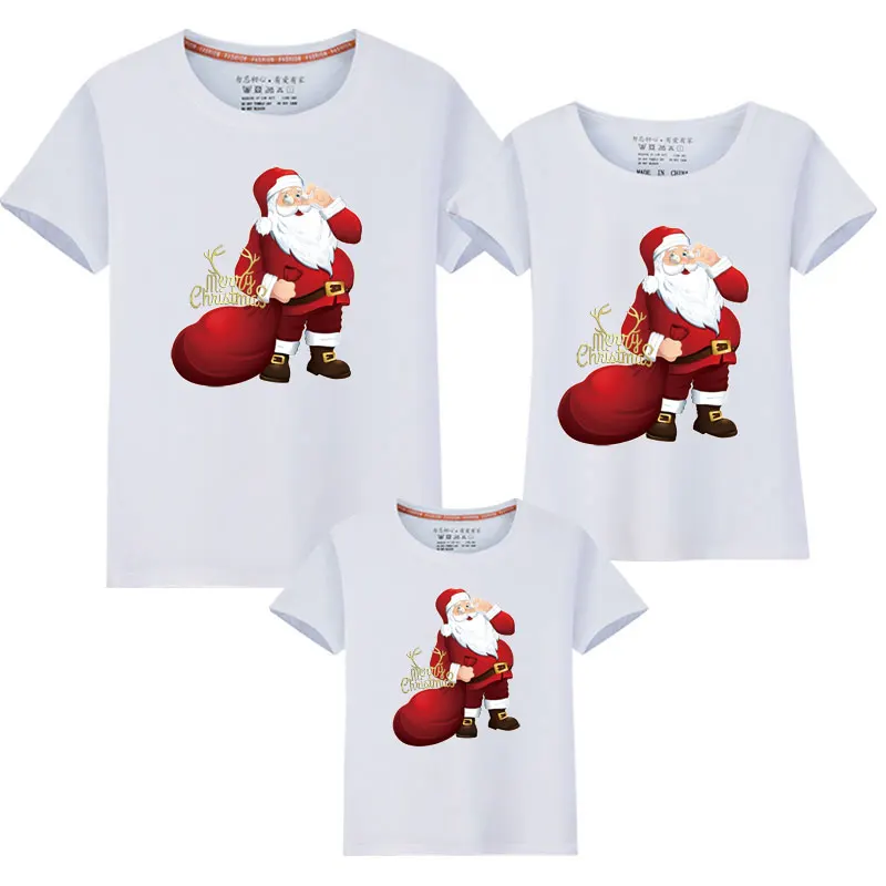 Семейная Рождественская одежда для всей семьи забавная хлопковая футболка с короткими рукавами с принтом Санта Клауса для танцев семейный образ новогодний 1 предмет