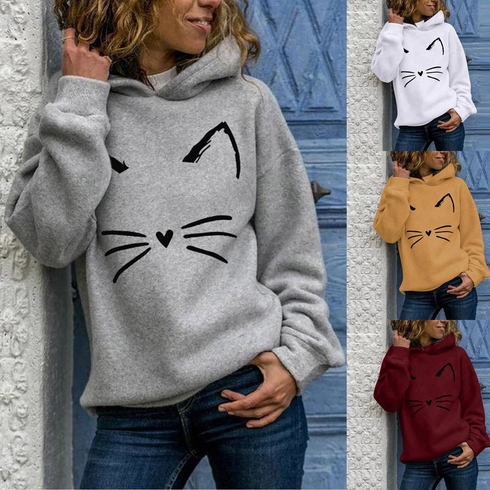 Женские толстовки с принтом в виде собачьей лапы, Легкий Повседневный пуловер с длинным рукавом, Женская толстовка с капюшоном на осень и зиму, в стиле Харадзюку, 2021
