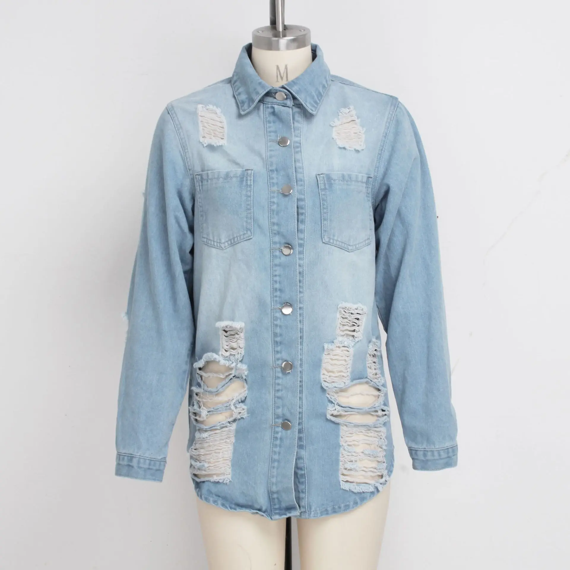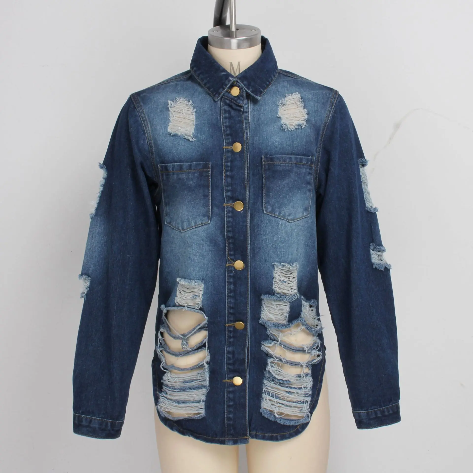 Горячая Распродажа плюс размер джинсовая куртка для женщин модное рваное длинное пальто повседневная Весенняя и осенняя одежда XL-5XL Прямая поставка