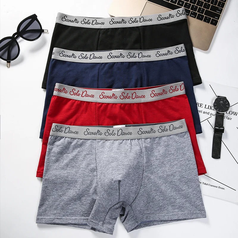 Новые Боксеры 4 шткомплект мужские хлопковые трусы Мужское нижнее белье боксеры дышащие мужские однотонные трусы модные удобные брендовые шорты