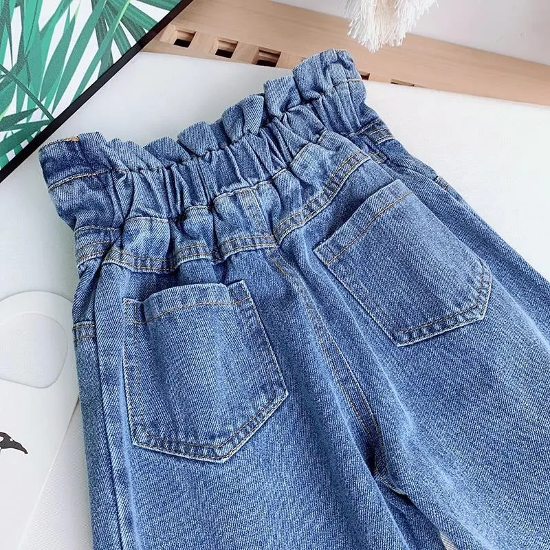 Демисезонные джинсы для девочек, детские джинсовые брюки с широкими штанинами, детские штаны, уличная одежда, штаны с высокой талией и пуговицами для детей 3-14