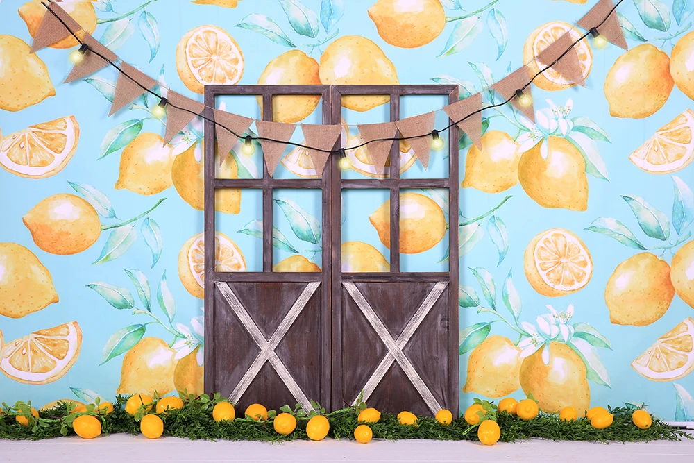 Фон для фотосъемки с изображением лимона тематическая вечеринка на день рождения украшения с изображением старой деревянной двери для новорожденных портретный фон для фотосъемки с изображением W-4388