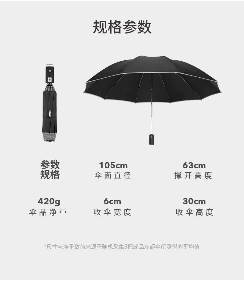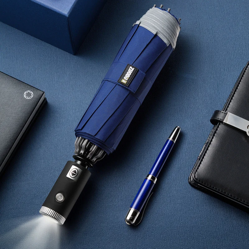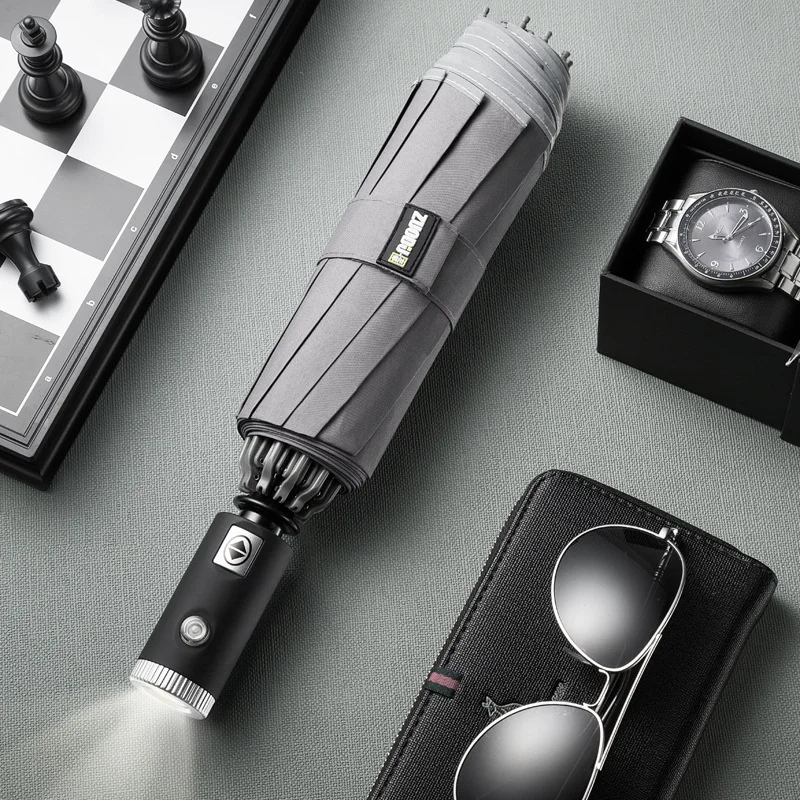 Зонт мужской, складной, автоматический, со светодиодный кой