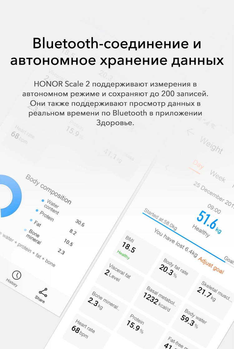 Смарт-весы Huawei Honor smart scale, 2, стандартный анализатор тела...
