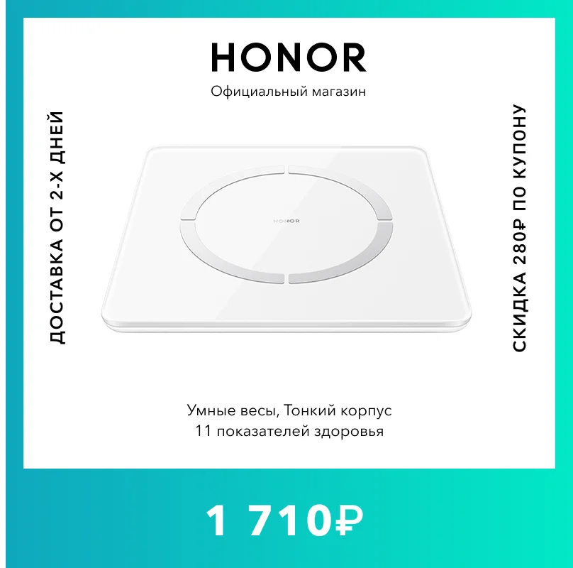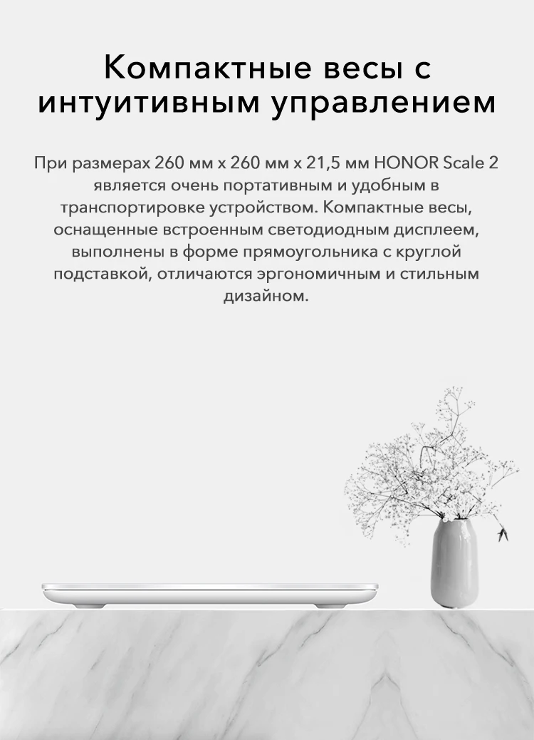 Умные весы HONOR Scale 2, СКИДКА -300 р Ростест, Доставка от 2 дней, Официальная гарантия