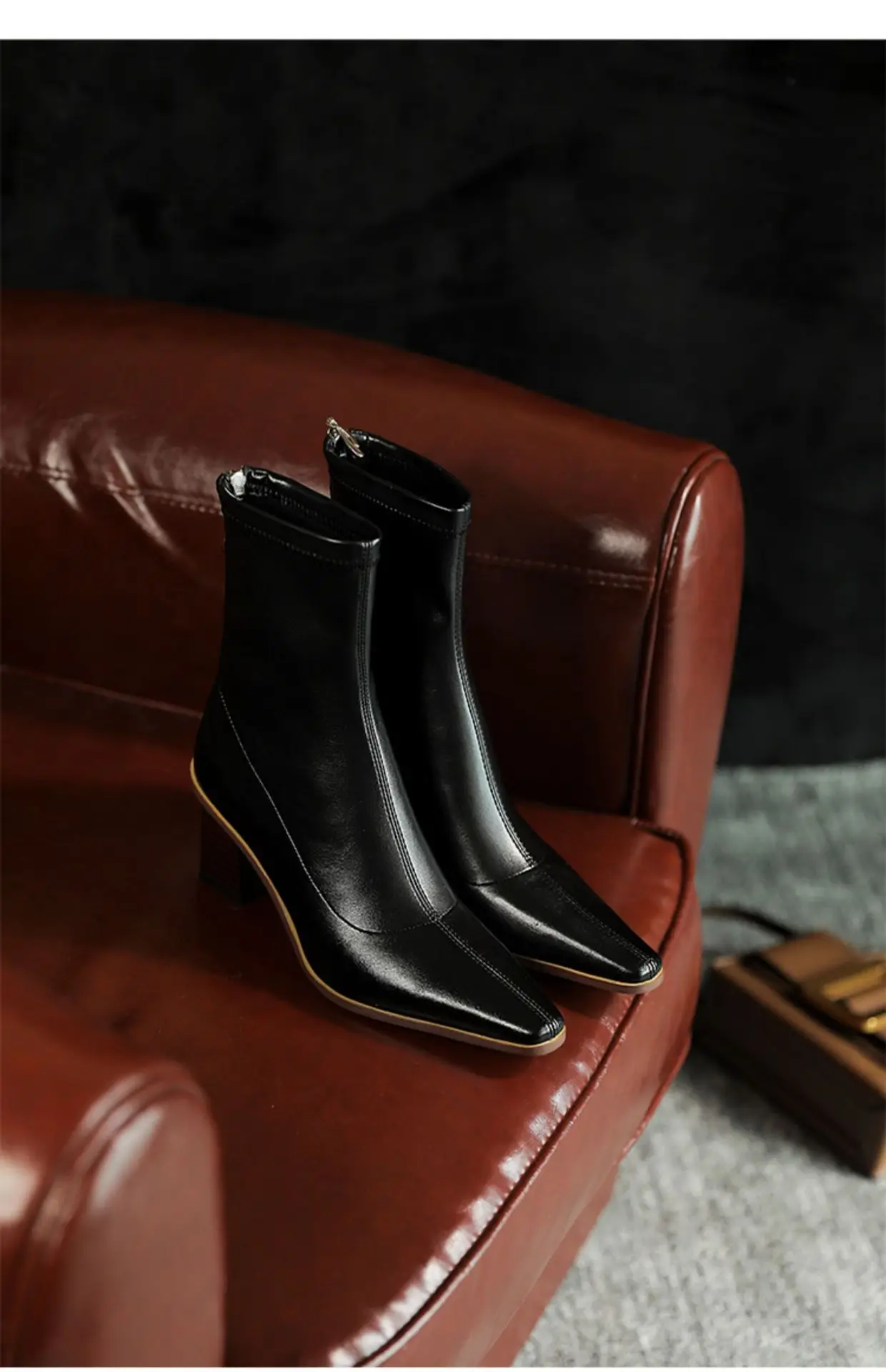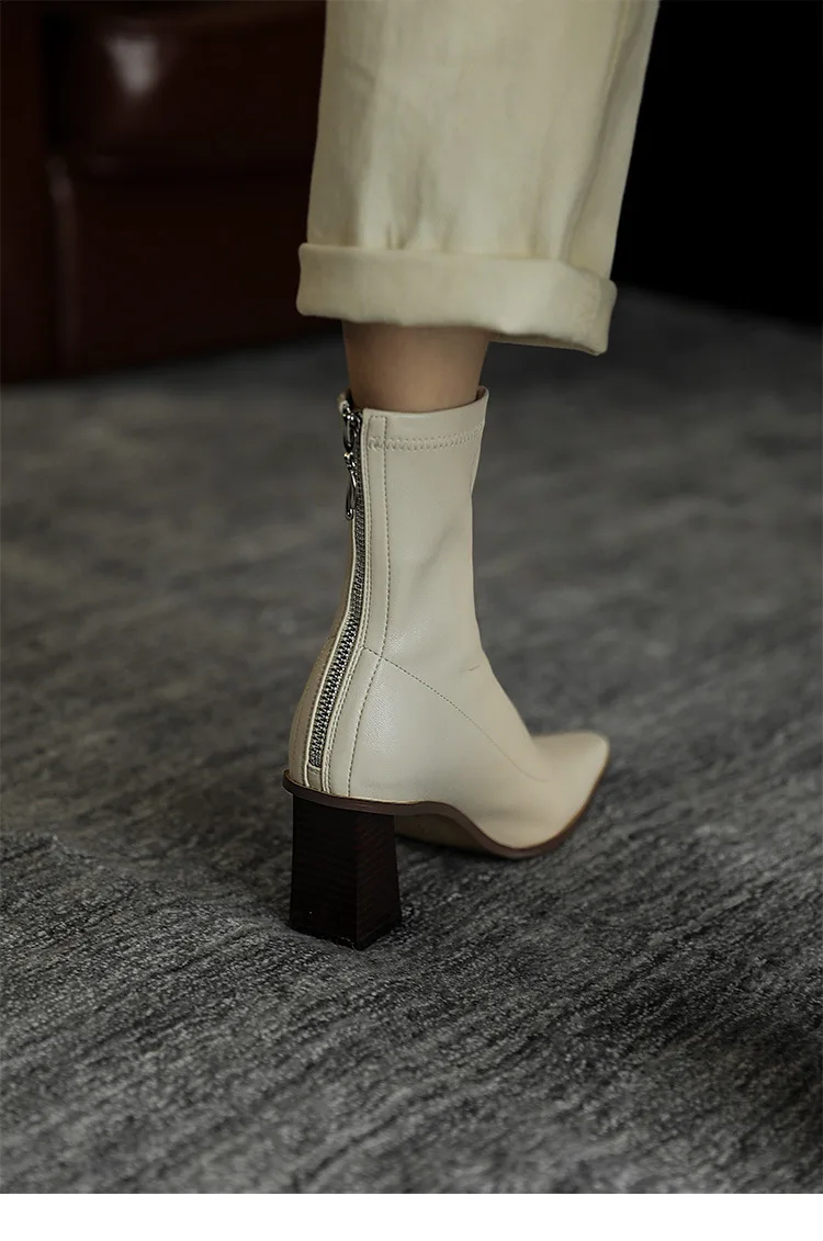 Высококачественные удобные ботильоны из мягкой искусственной кожи; Элегантные женские туфли с квадратным носком на шпильке; Модные женские Вечерние туфли на молнии