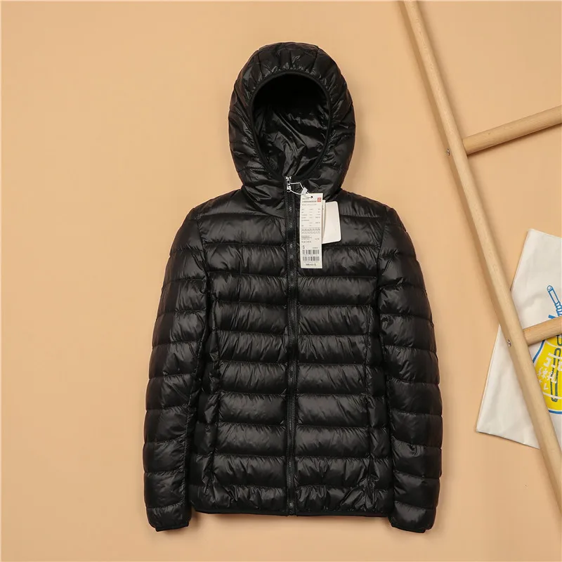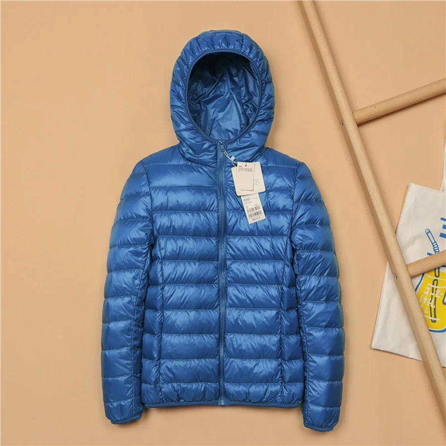 Пуховик женский зимний ультралегкий на 90% пуху белой утки, с капюшоном