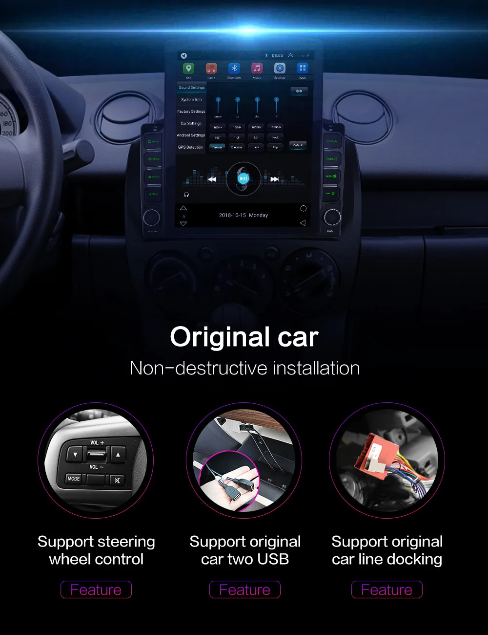 1. Поддержка функции OBD2. Поддержка DAB + функции3. Поддержка для добавления функции внешнего микрофона4. Поддержка для добавления функции ТВ (только поддержка стран Южной Америки)5. Поддержка добавления голосовой функции