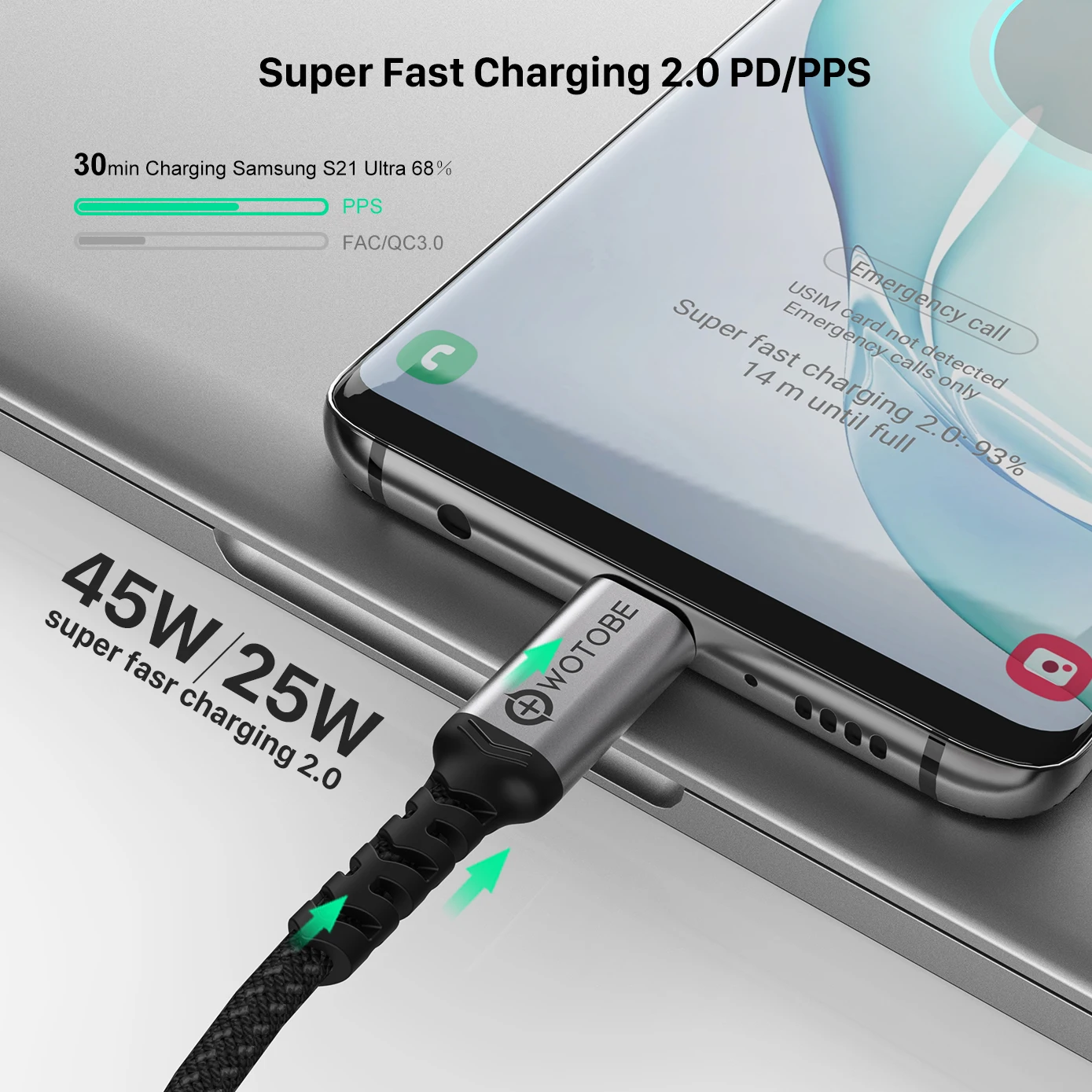 Кабель WOTOBE usb-c, 100 Вт, 5 А, В нейлоновой оплетке, для MacBook, iPad, xiaomi 2,0