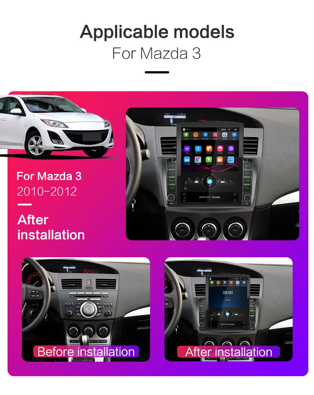 Две модели Mazda 3 с различными консолями и разными годами (опция)Для Mazda 3 2004 2005 2006 2007 2008 2009Для Mazda 3 2010 2011 2012 20131, 4-х ядерный конфигурация включает в себя (Оперативная память + Встроенная память): 1 Гб + 16 ГБ/2 ГБ + 16 ГБ/2G + 32G [дополнительно];2, 8-ядерный конфигурация включает в себя (Оперативная память + Встроенная память): 7260-2G + 32G / 7260-4G + 64G / 4G-SIM-5760-2G + 32G / 4G-SIM-5760-4G + 64G [опционально];3, 4-х ядерный содержит: версия: Android 8,1;Четырехъядерный процессор MTK8227 / Cortex-A7Поддержка автомобиля logo5; Sfactory пароль: 8888;Разрешение: HD 2.5D,1024*600;Не поддерживает функцию AM, функцию RDS;Обычная посылка WiFi поддерживает функцию видеовыхода;4, 8-Core содержат: версия: Android 9,0;Восемь ядер: CPU Quad core и GPU Quad core соответственно;Поддержка автомобиля logo5; Sfactory пароль: 8888; Разрешение: HD 2.5D,1024*600;Версия 7260-WIFI: поддерживает функции DSP, сплит-экрана; Не поддерживает видеовыход;4G-SIM-5760-WIFI версия: поддерживает функции DSP, Carplay, сплит-экрана; Не поддерживает видеовыход;5. Операционная система Android может установить приложение Google Play store Skype Facebook youTube Twitter и т. Д.;6. Поддержка: радиостанция, Bluetooth Вызов, Bluetooth музыка, управление рулевым колесом, встроенный WiFi, MP3, видео музыка (MPG, AVI), навигация, видеовыход, зеркальная связь, USB 4G LTE WIFI ключ и другие функции;